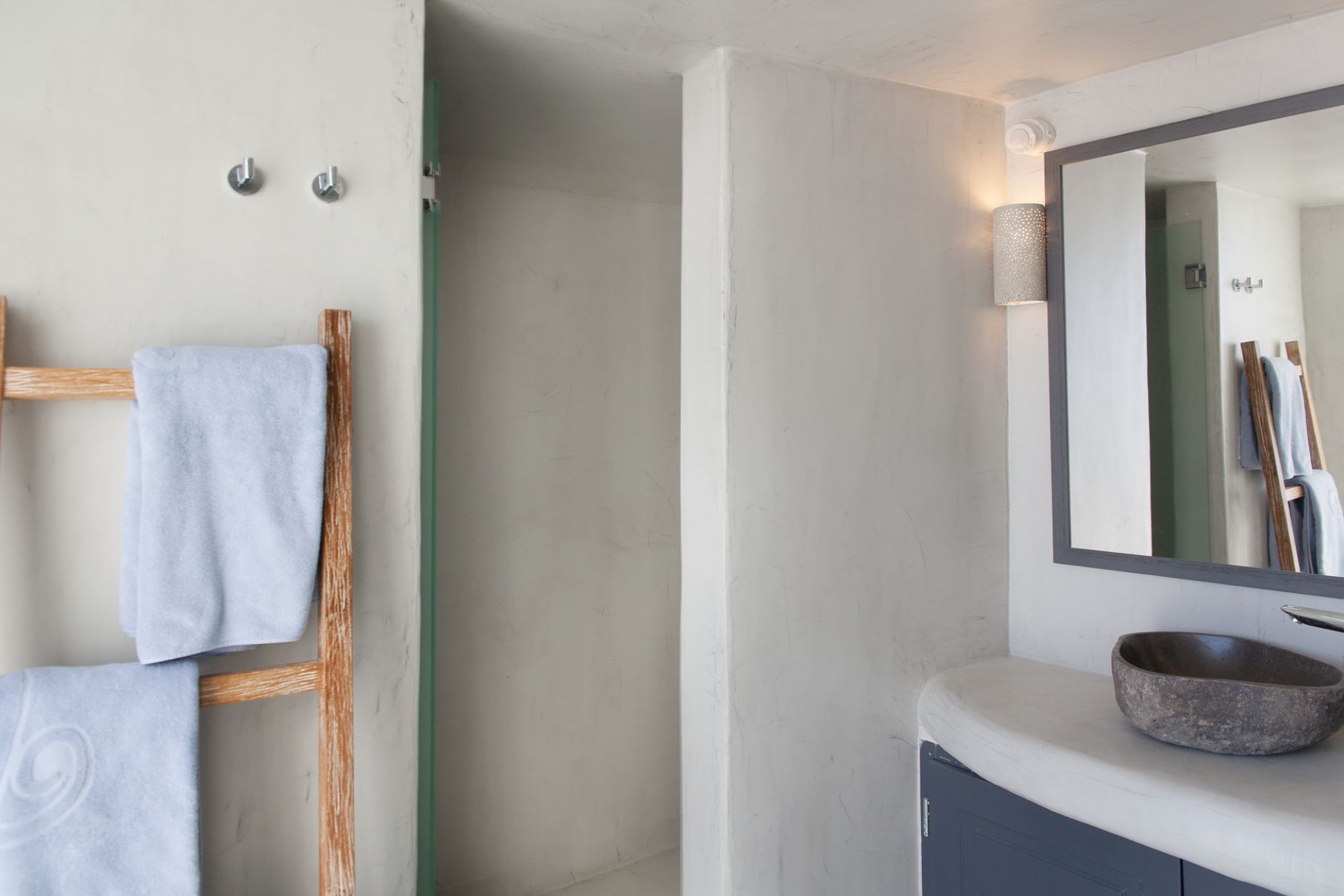 The villa sleeps up to 10 guests in its five bedrooms, all with en-suite bathrooms with rain showers. The master bedroom is on the top floor and features a study area, a spacious walk-in wardrobe/dressing room, and direct access to the upper balcony. Three more double bedrooms are located on the ground floor, all with access to the pool terrace. Lastly, there is a twin room at the back of the house, which has access to a shady patio.