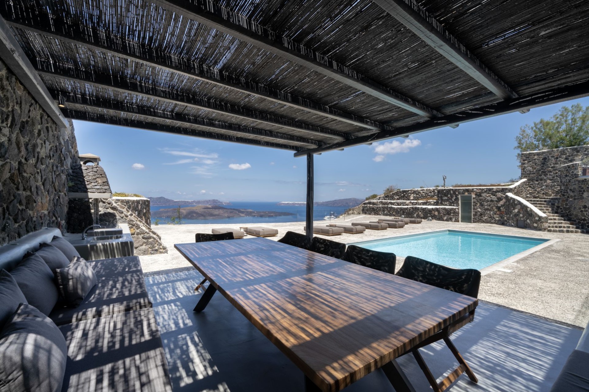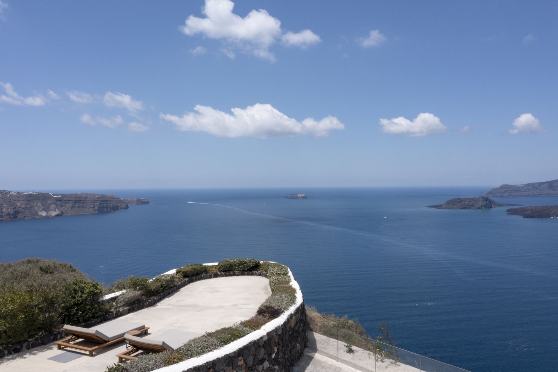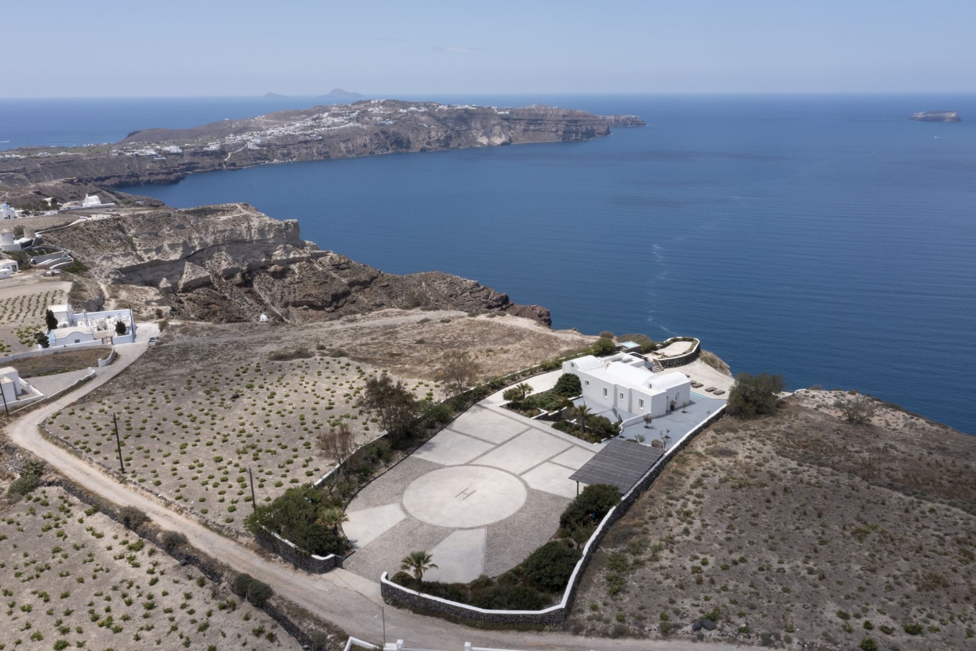 A luxurious clifftop villa in a quaint, traditional village that boasts panoramic sea and volcano views