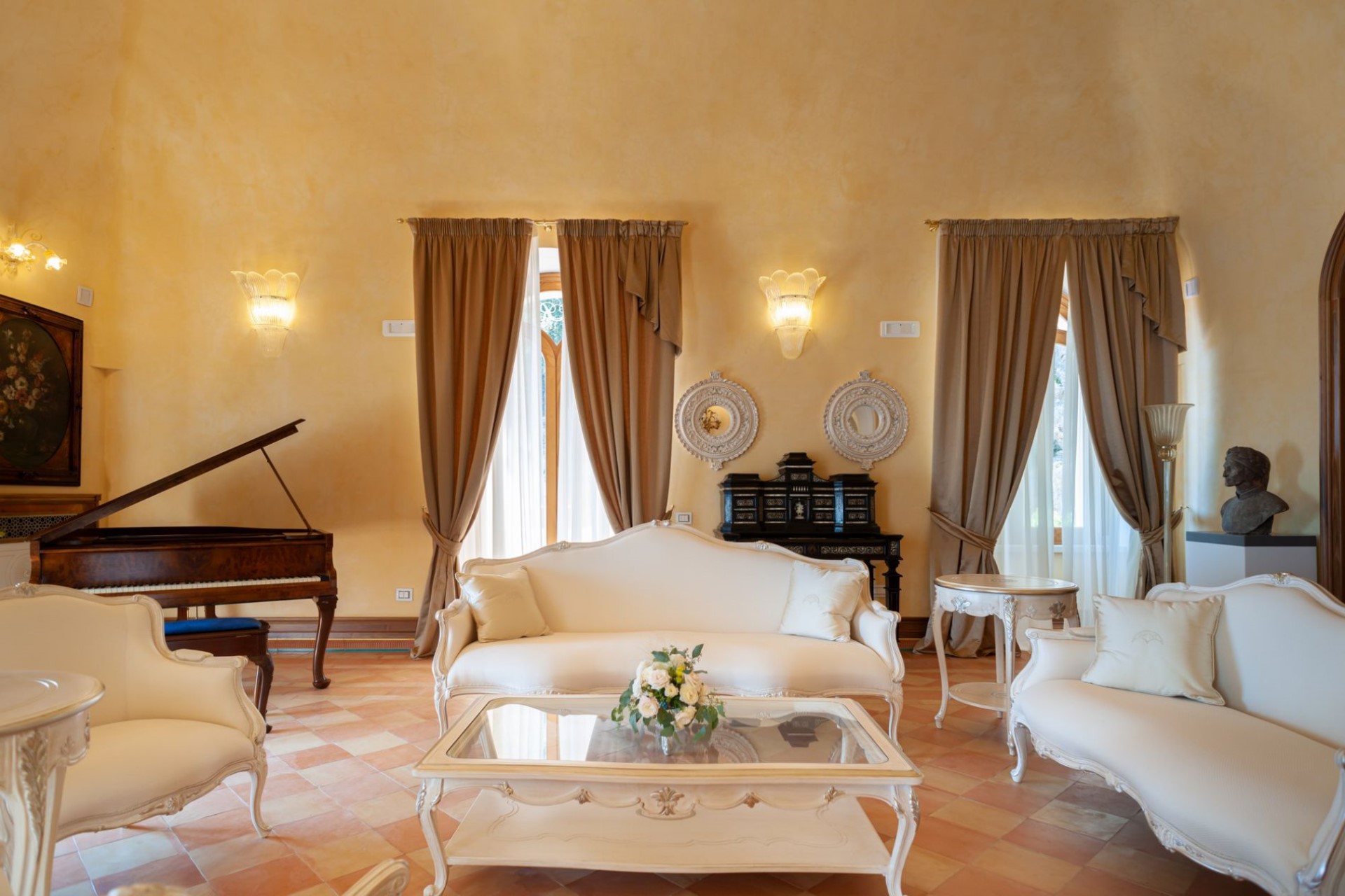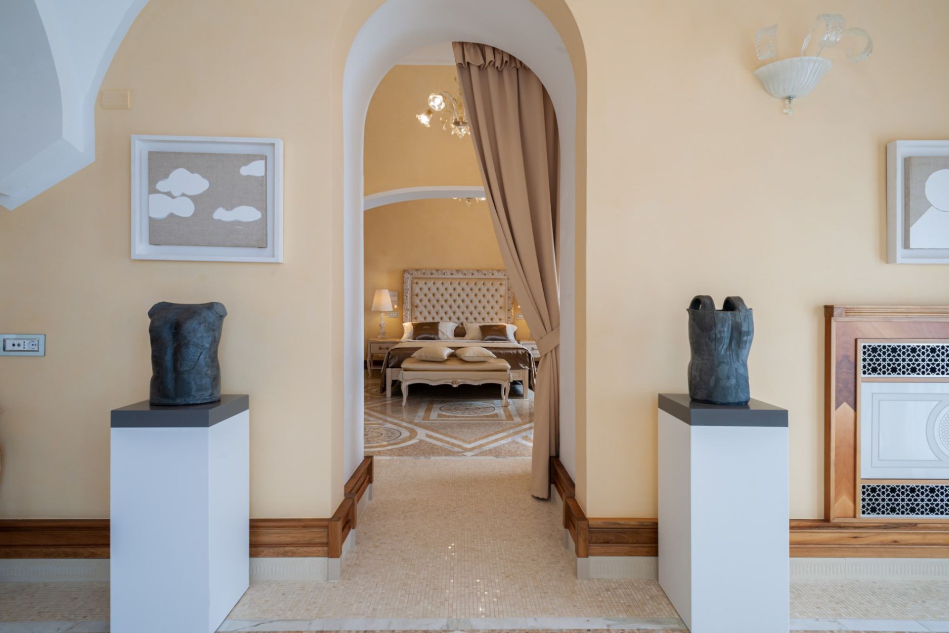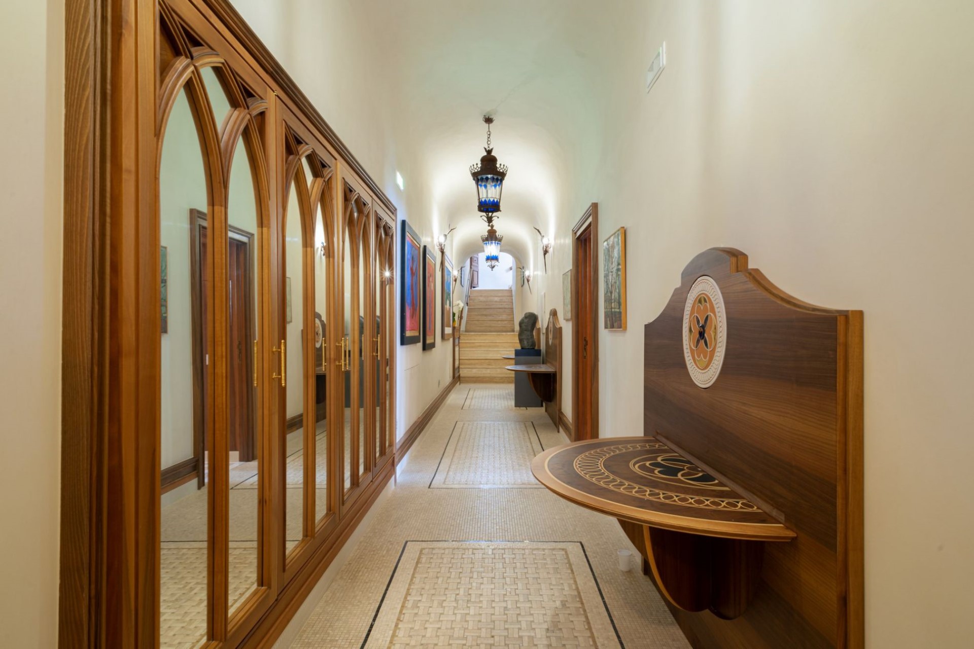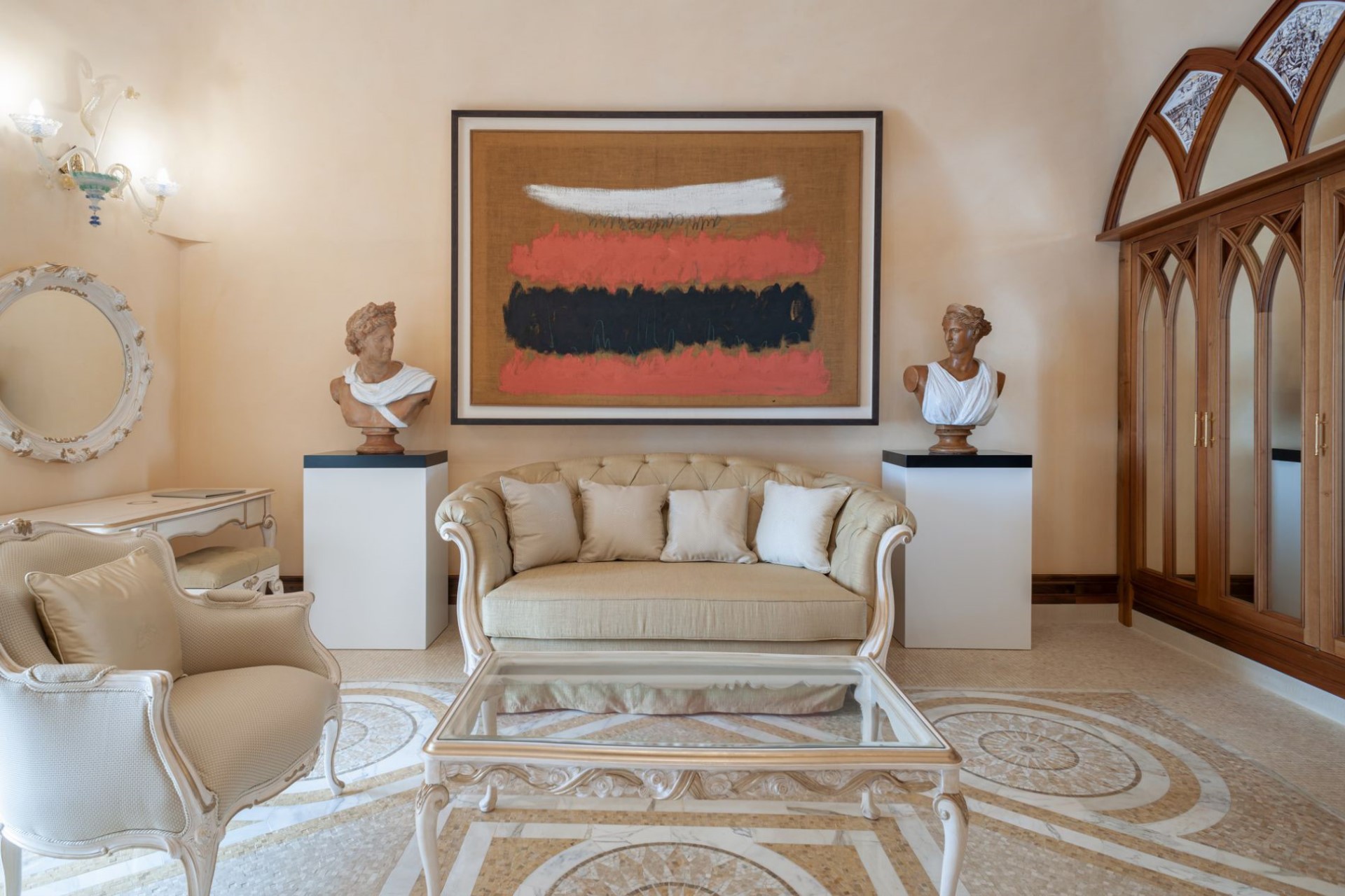 The historic villa has been expertly restored, retaining its traditional architectural elements including vaulted ceilings, arched windows, and tiled corridors. The décor and furnishings are by local artisans and have been beautifully paired with antiques including gold-plated door handles, goldsmith cabinet doors, and Murano glass lamps, as well as a mix of traditional and contemporary art throughout.