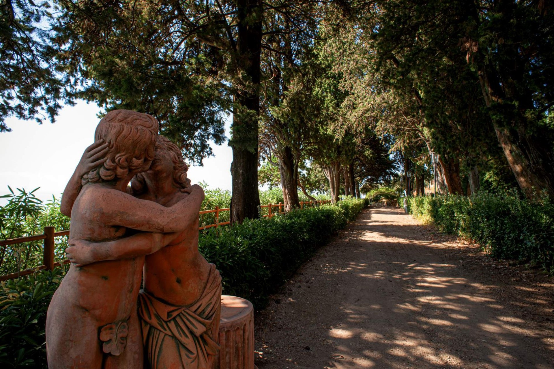 The villa is hidden from view at its entrance by lush vegetation and is surrounded by 25,000 square metres of landscaped gardens, offering guests complete privacy. The gardens feature typical Mediterranean vegetation and guests can wander the paths lined with cypresses, lemon trees, pines, and olive groves, or relax in the various outdoor living spaces. The expansive grounds are also perfect for hosting a variety of events from weddings and birthday celebrations to galas, exhibitions and corporate retreats.