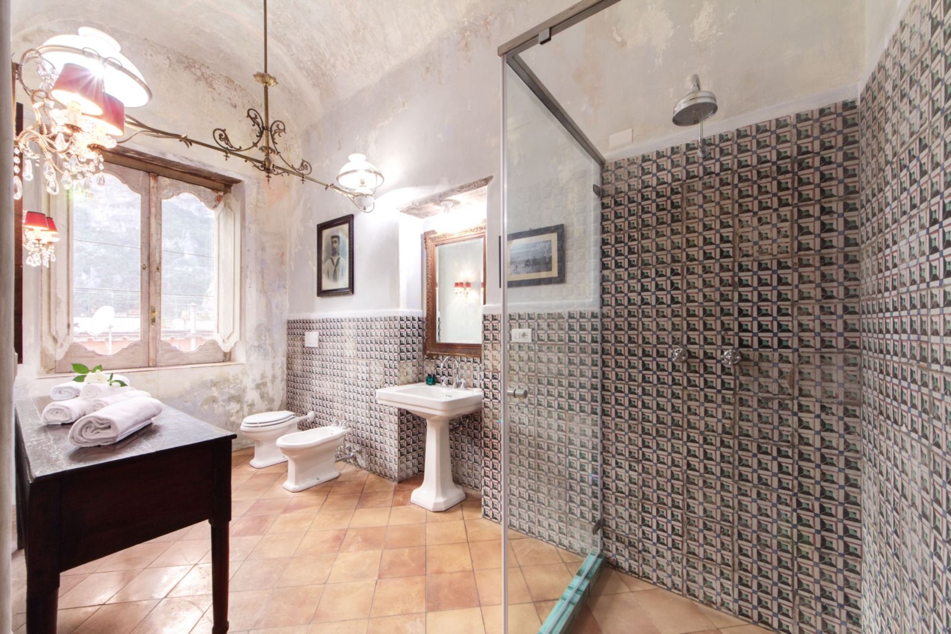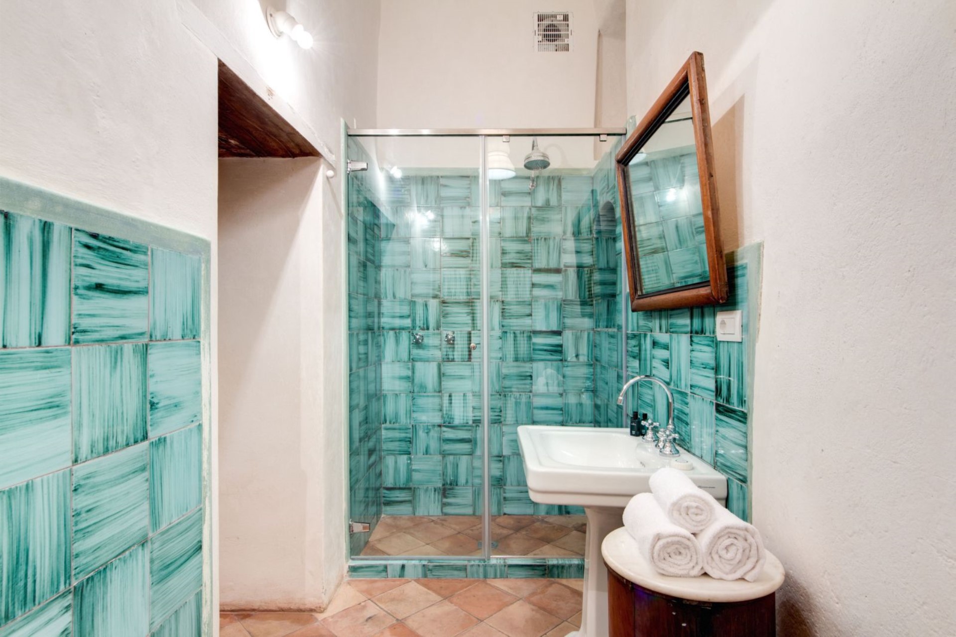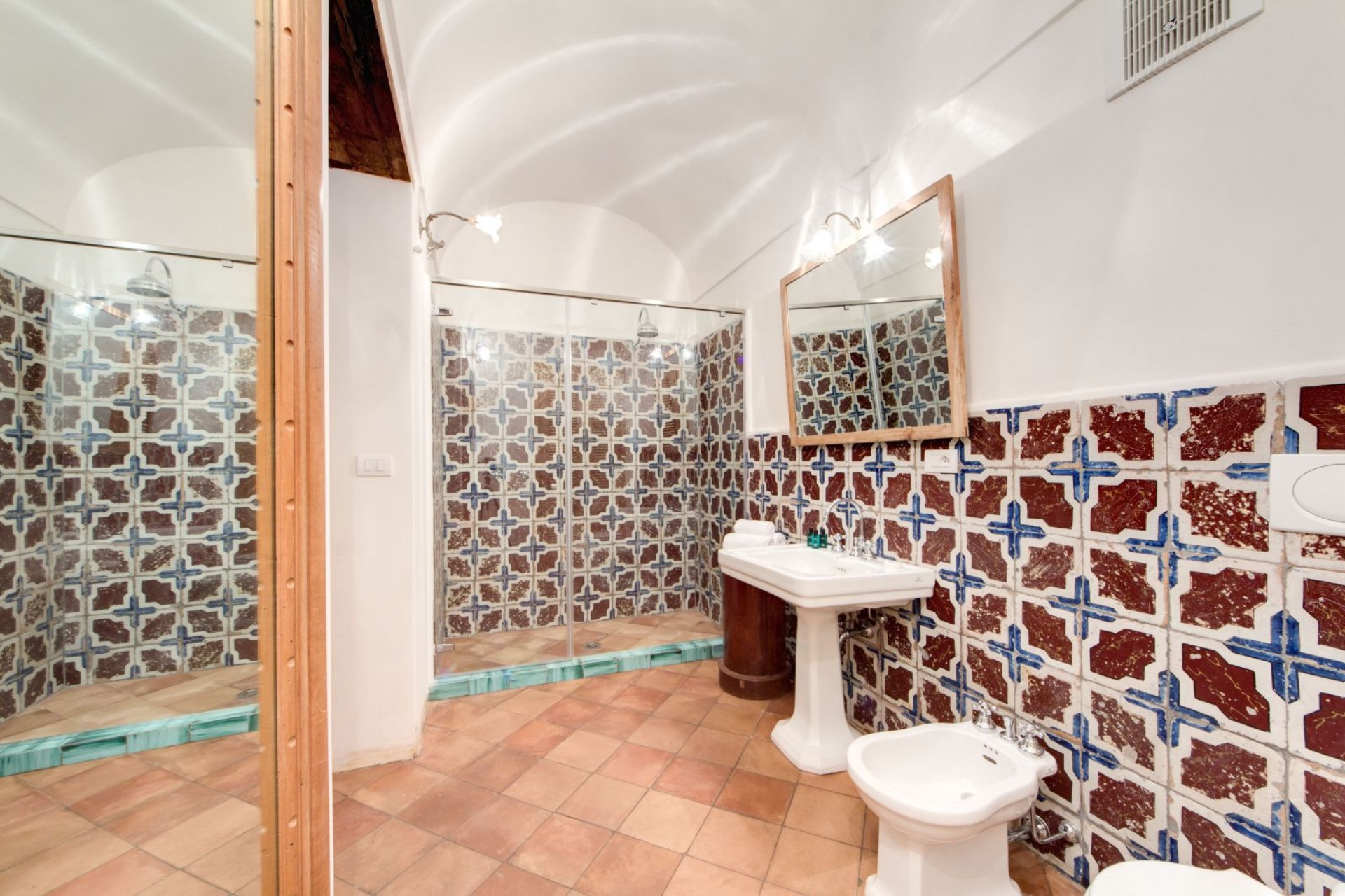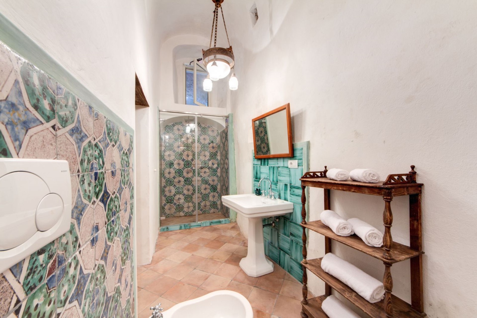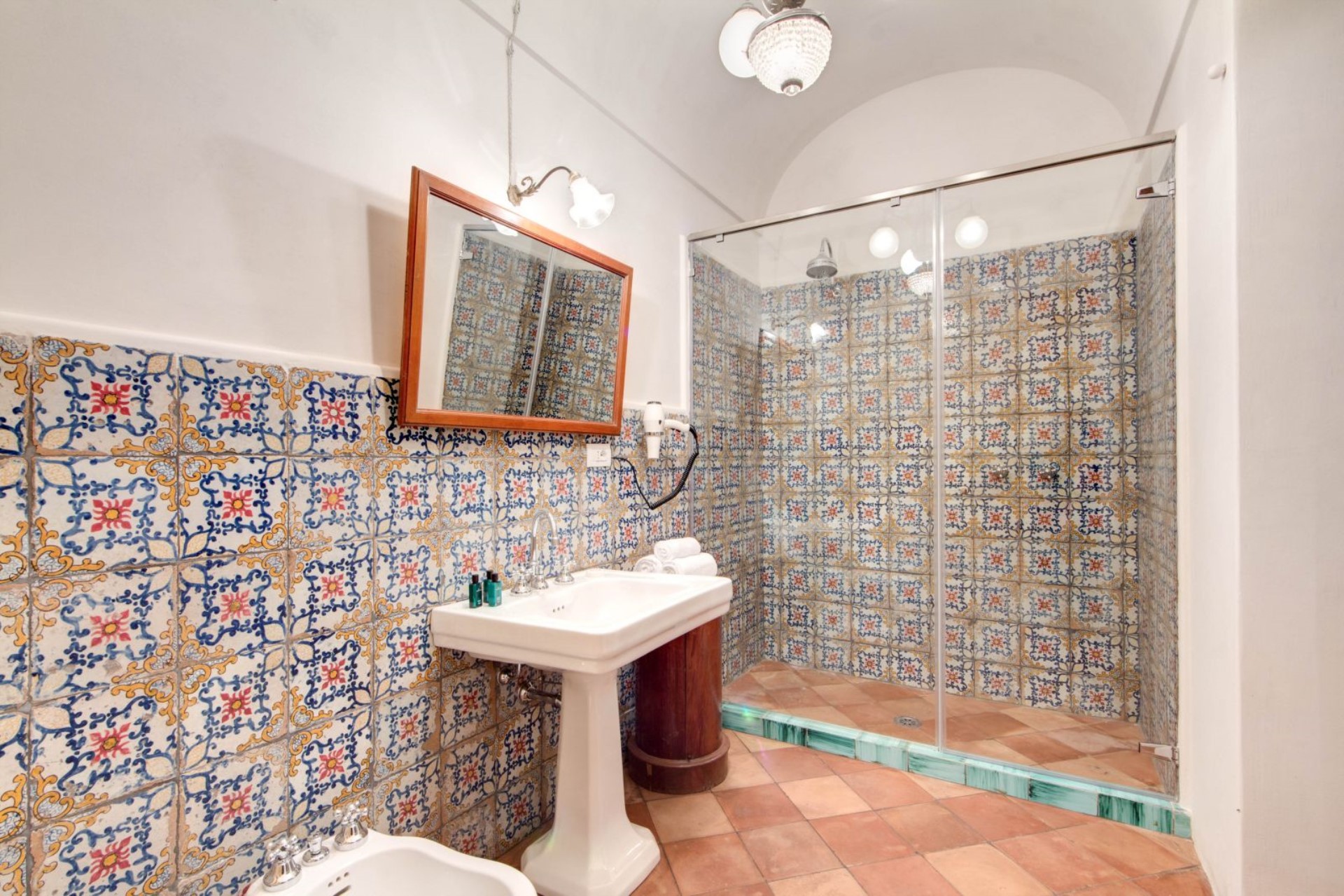 On the third floor there are four suites each with their own private bathroom boasting beautiful Neapolitan ceramics. There are also two attic suites with two en-suite double bedrooms each, available on request.