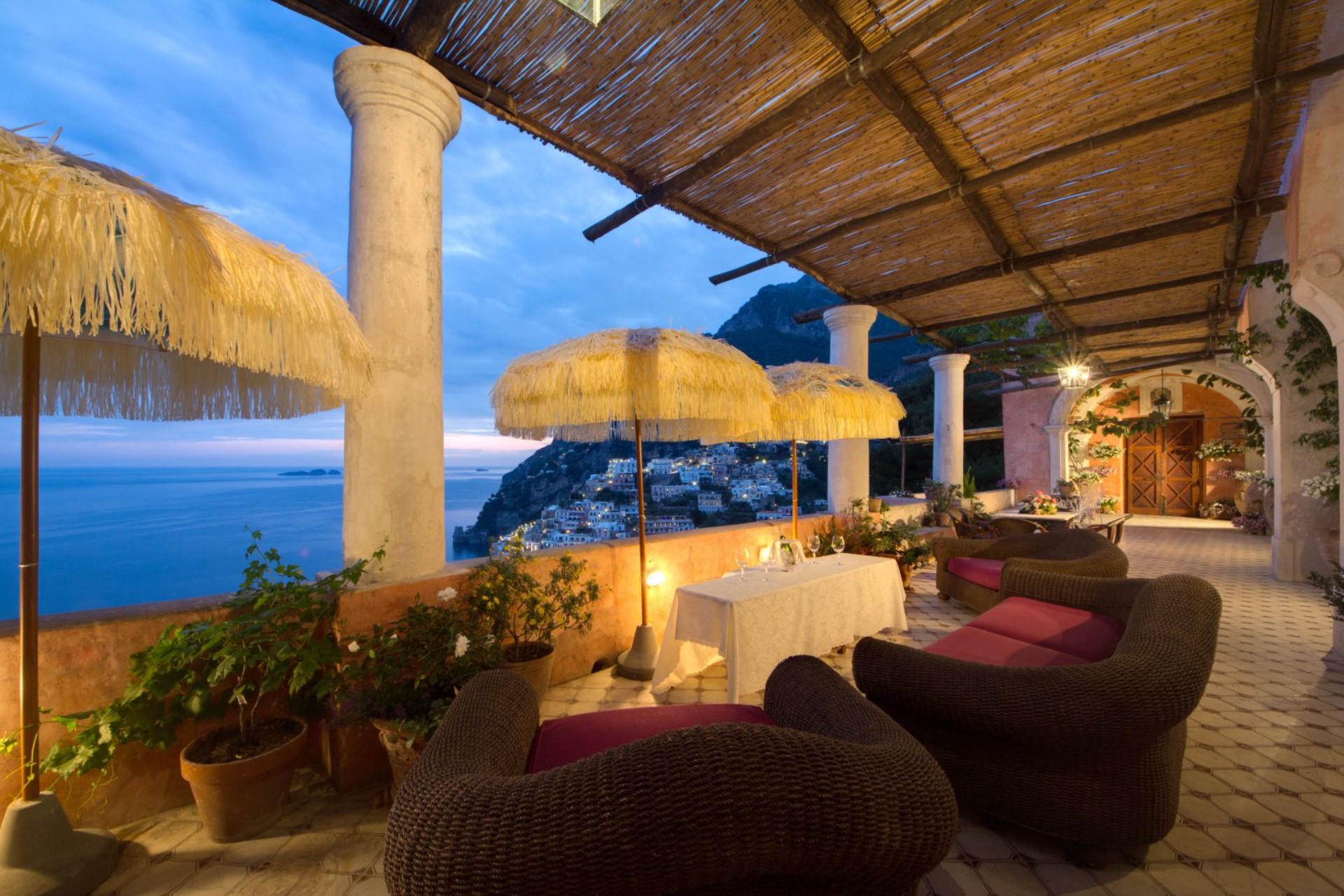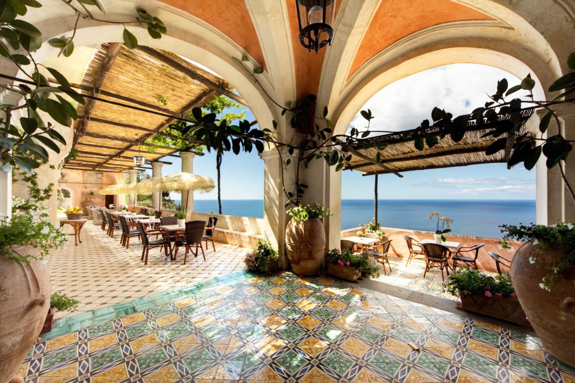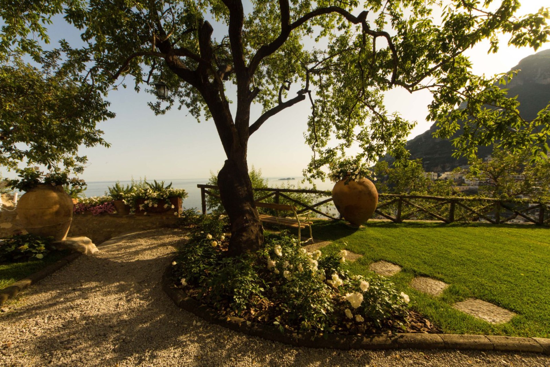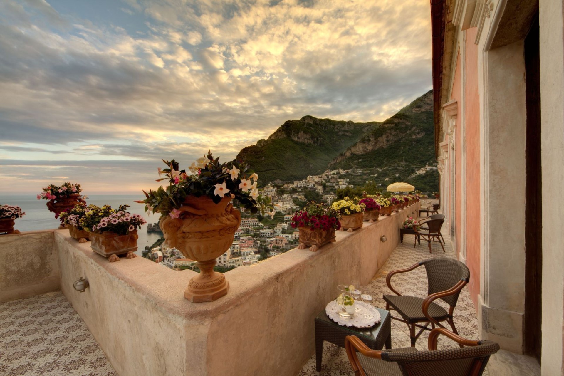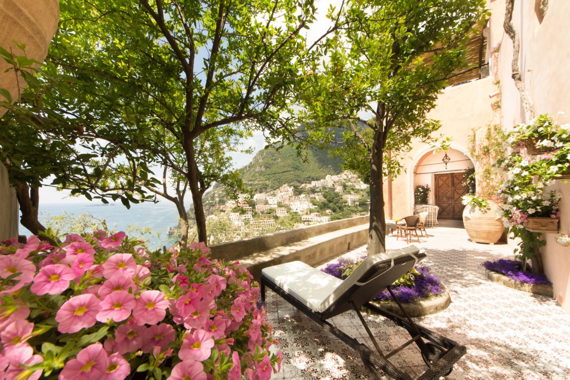 The beautiful gardens feature bougainvillea, lemon and orange trees, plus a large 300 sqm of terraces offer stunning views of the Amalfi Coast.