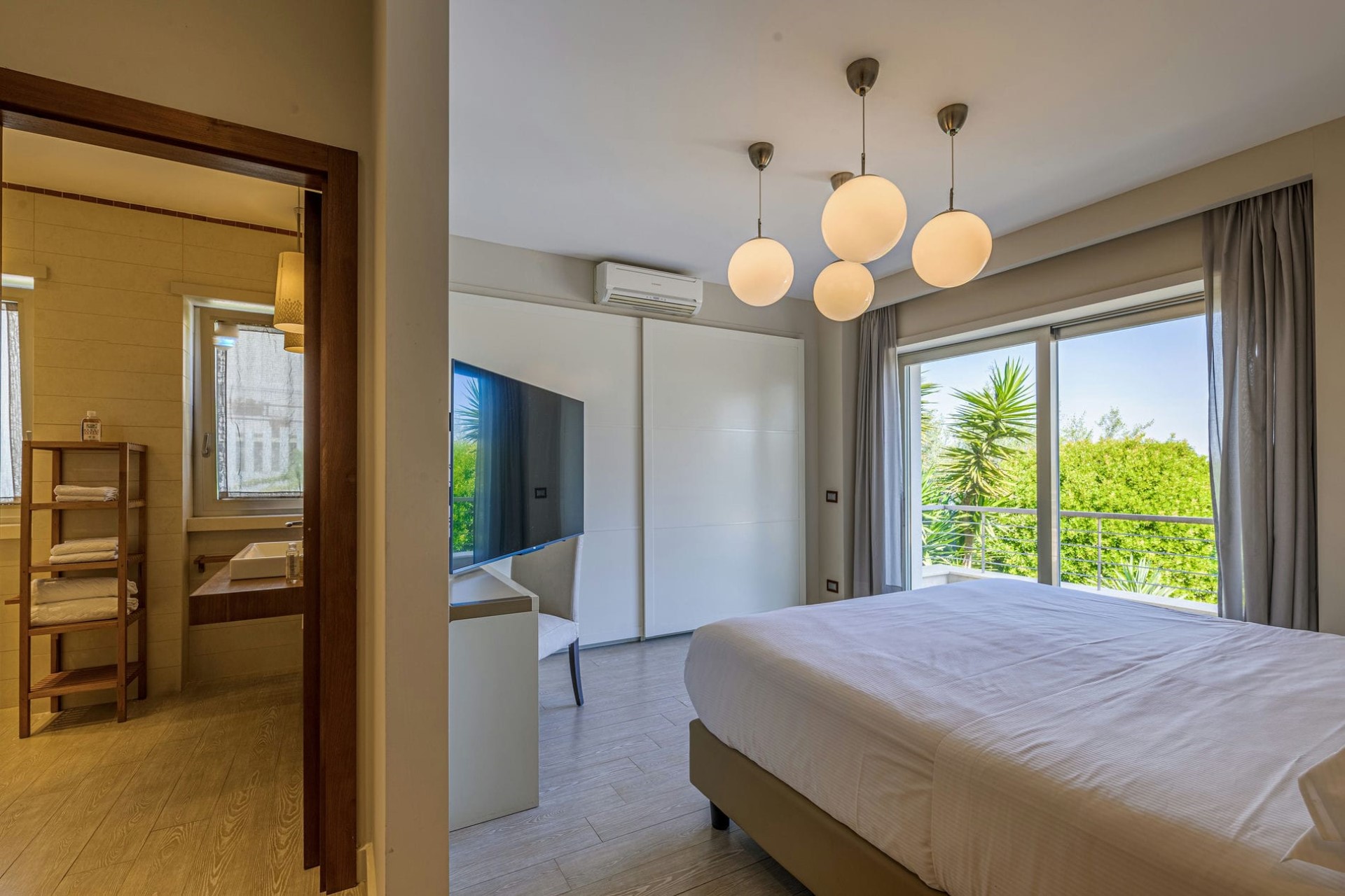 This luxury property features six bedrooms, all decorated with natural colours for a sophisticated look. All bedrooms enjoy en-suite facilities and panoramic balconies where guests can appreciate the beautiful views. The master bedroom also boasts a large Jacuzzi bath tub ideal for a relaxing soak at the end of the day.