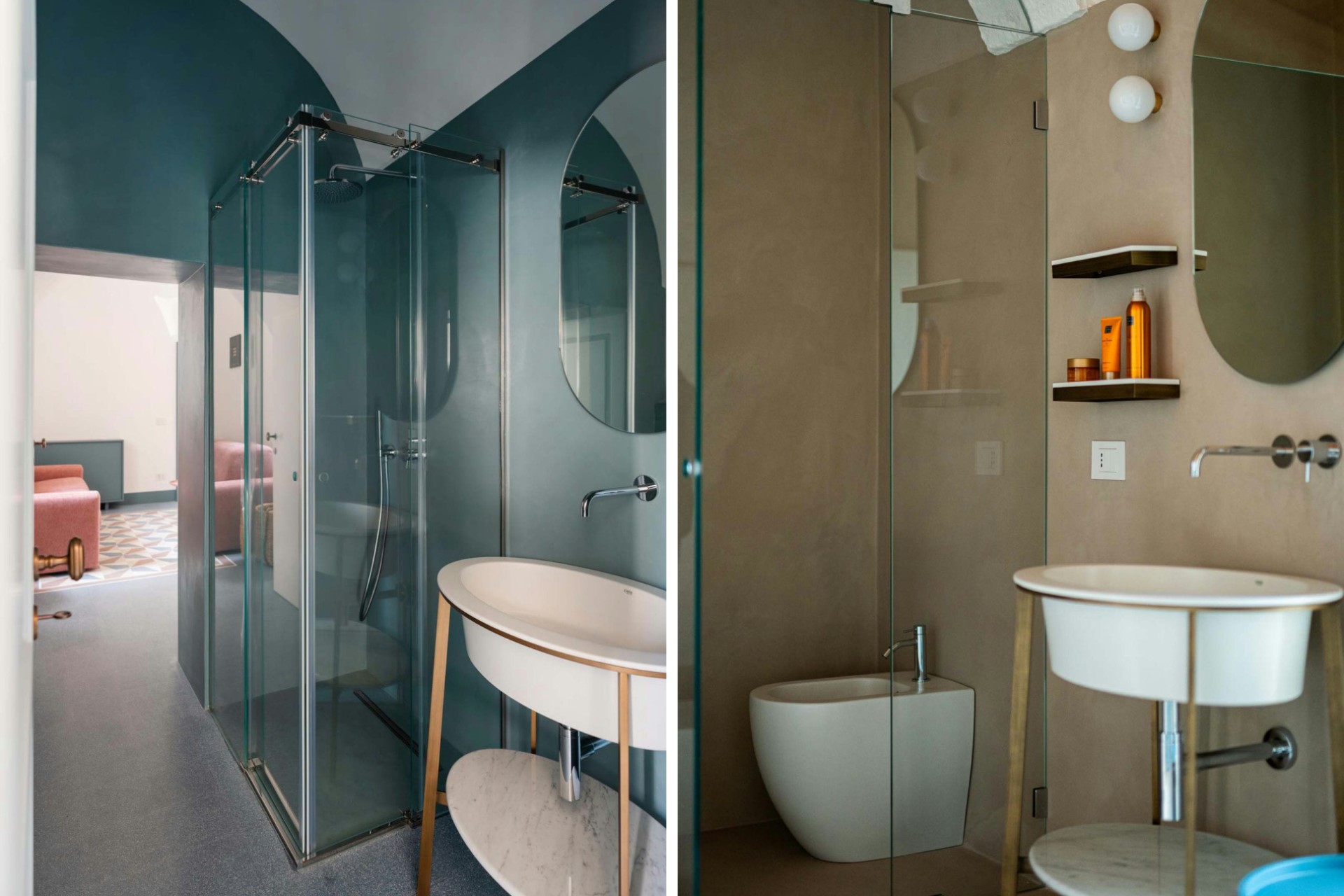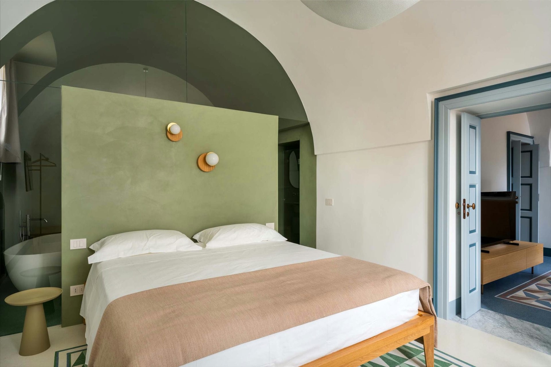 Suite 3 – double bed, private living room with sofa bed, en-suite bathroom with bathtub & separate shower + en-suite bathroom with shower, and terrace access
