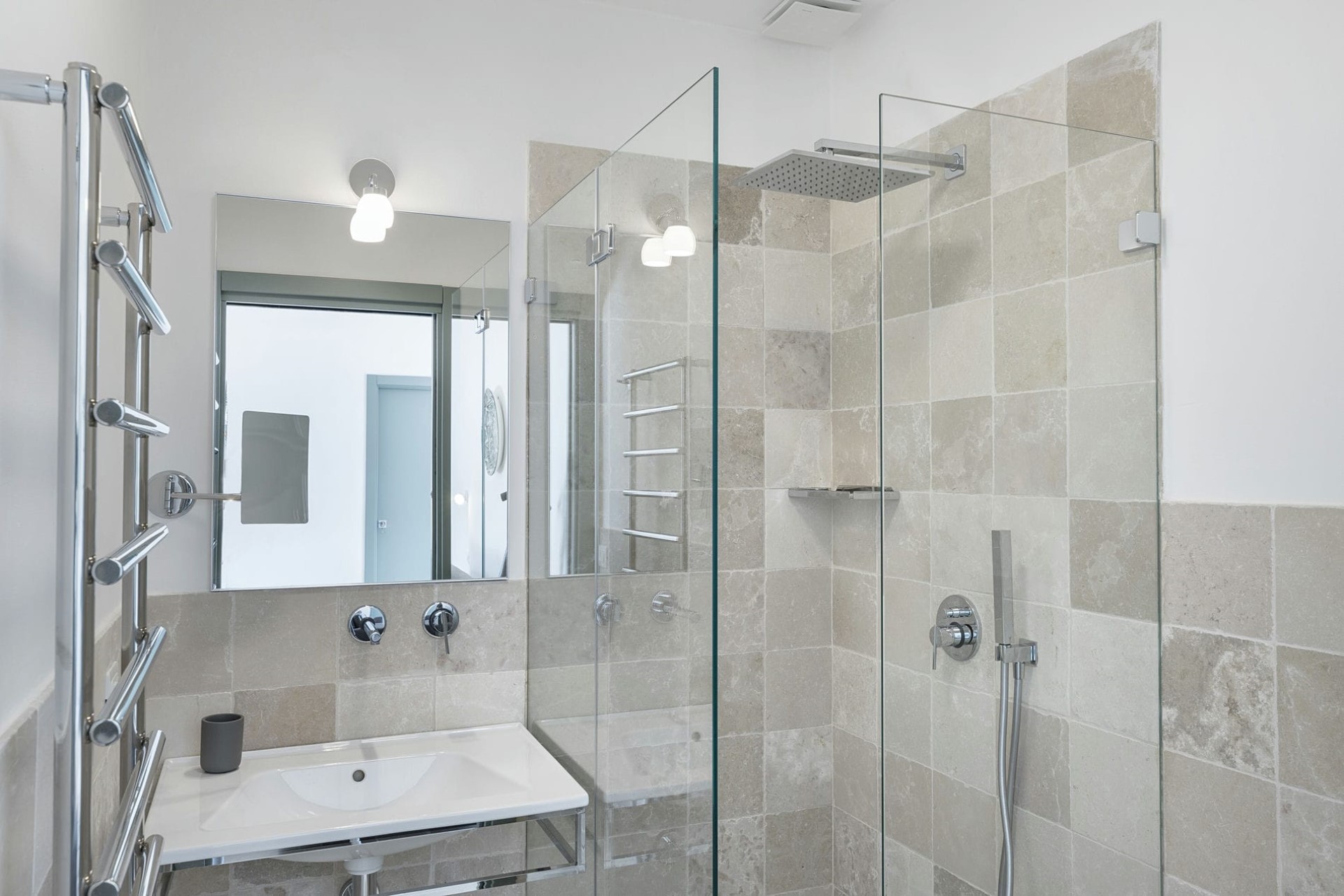 Five well-appointed suites are spread across the villa’s two floors, comfortably sleeping up to 10 guests. However, for large groups, especially those travelling with children, four suites also feature a private lounge room with a double sofa bed and another en-suite shower room. This can make for a comfortable second bedroom, taking the potential occupancy up to 18 guests. The first-floor suite also boasts a convenient kitchenette and direct access to the roof terraces on either side, boasting panoramic views.