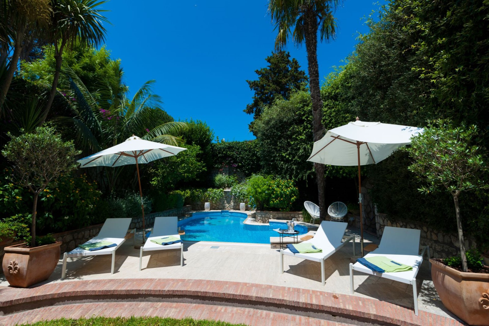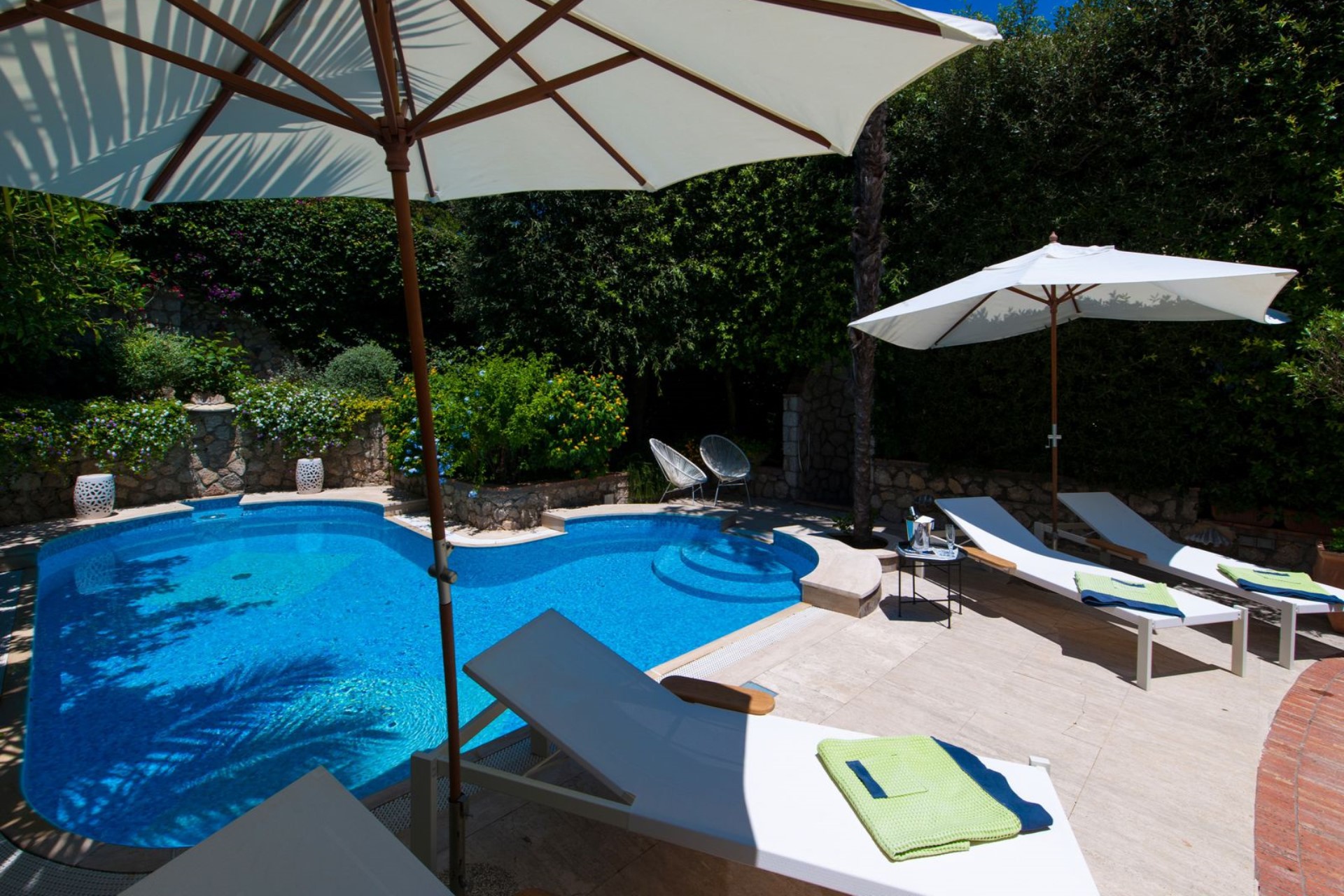 Boasting various relaxation areas, including a large terrace with beautiful views, a pool surrounded by greenery, a covered lounge, and dining area for 10 and a pizza oven, Villa Piazzetta makes an excellent choice for families who want to spend the summer holiday in Capri or celebrate special occasions. Moreover, the lush garden adds to the charm of this fantastic holiday villa.