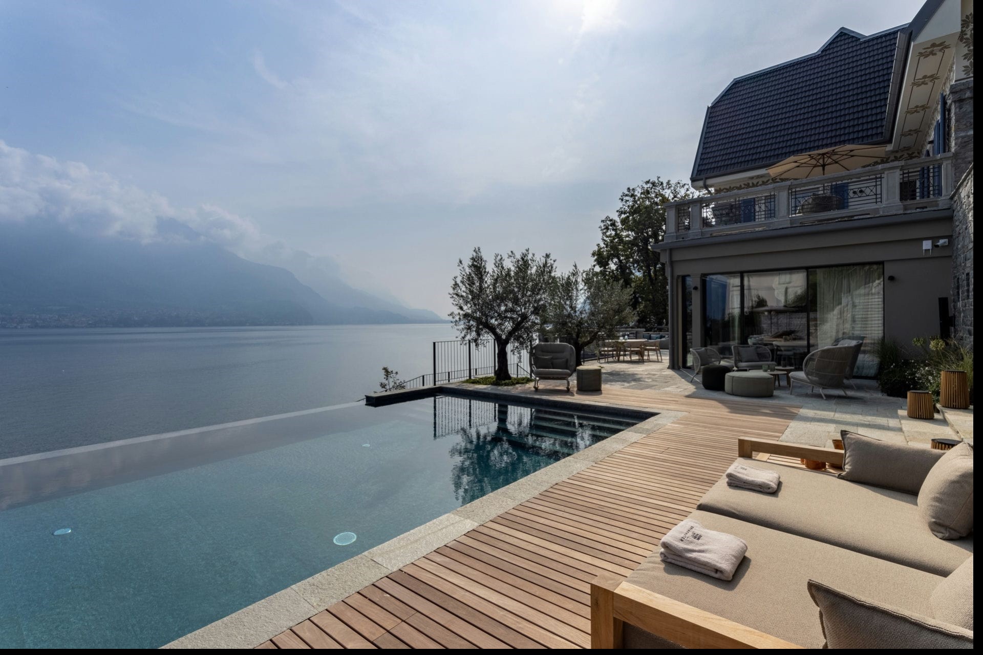 Guests can enjoy glorious lake views from the villa’s many terraces and outdoor spaces. The heated infinity pool is perfect for a refreshing dip before soaking up the sun from the poolside day beds.