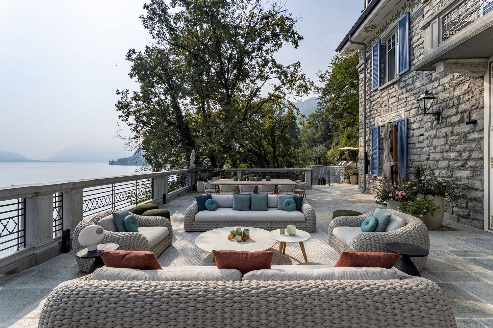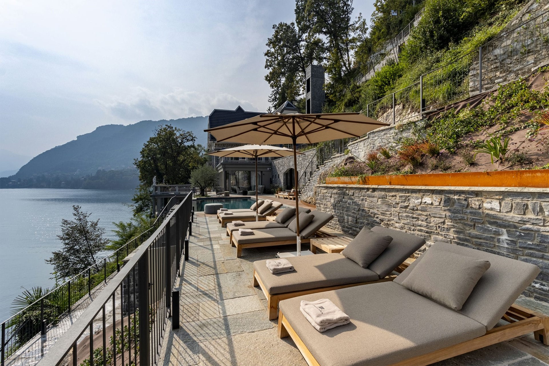 Seven beautifully appointed suites are spread across the villa’s three floors. All benefit from en-suite facilities, and most have terrace access. The master suite on the first floor also boasts a private living room with a sumptuous bathtub, an outdoor shower, and two private balconies with spectacular lake views.