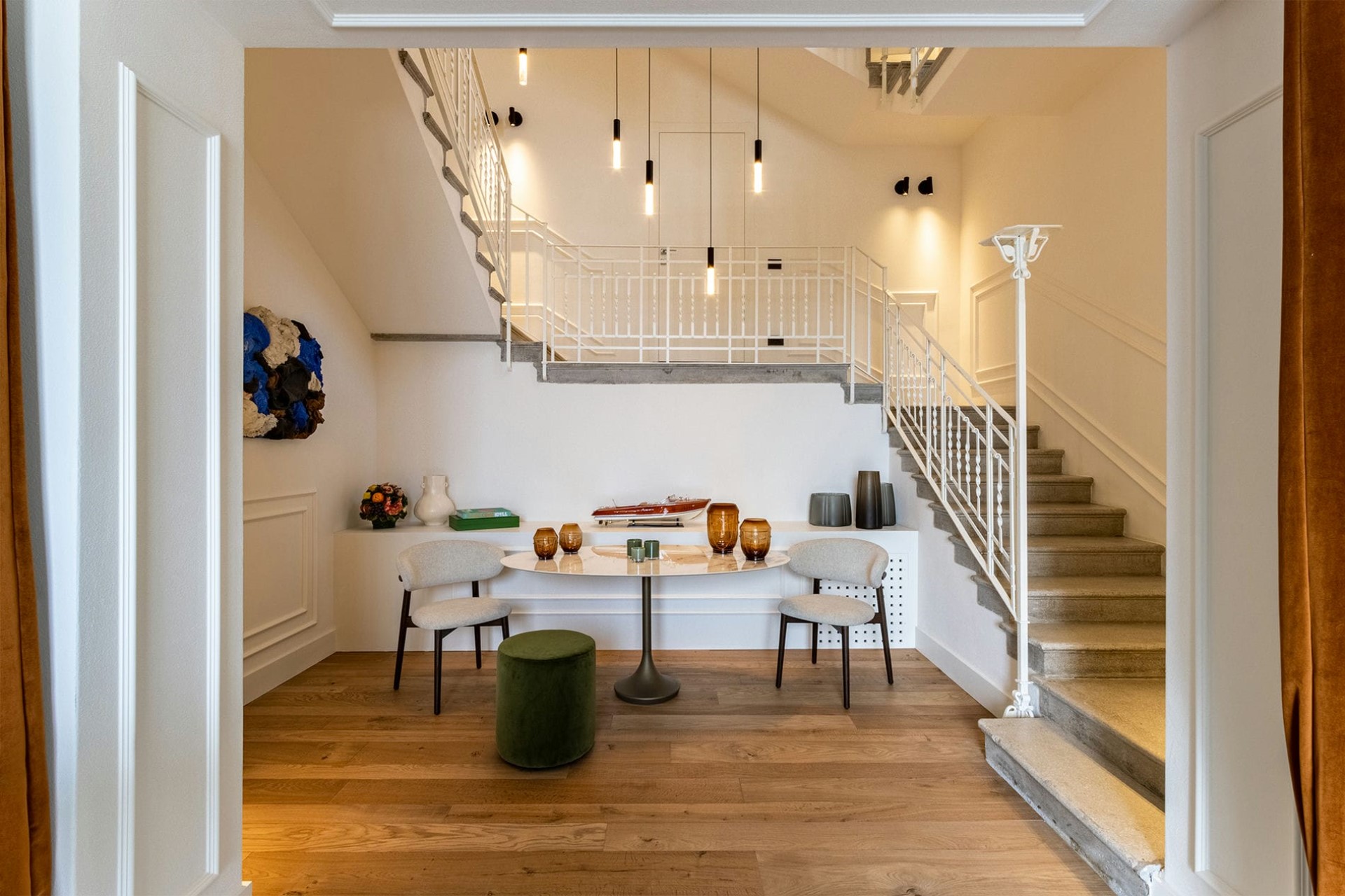 Indoors, the carefully renovated interiors are chic yet inviting. Original features like brick archways are perfectly blended with modern furniture and décor.