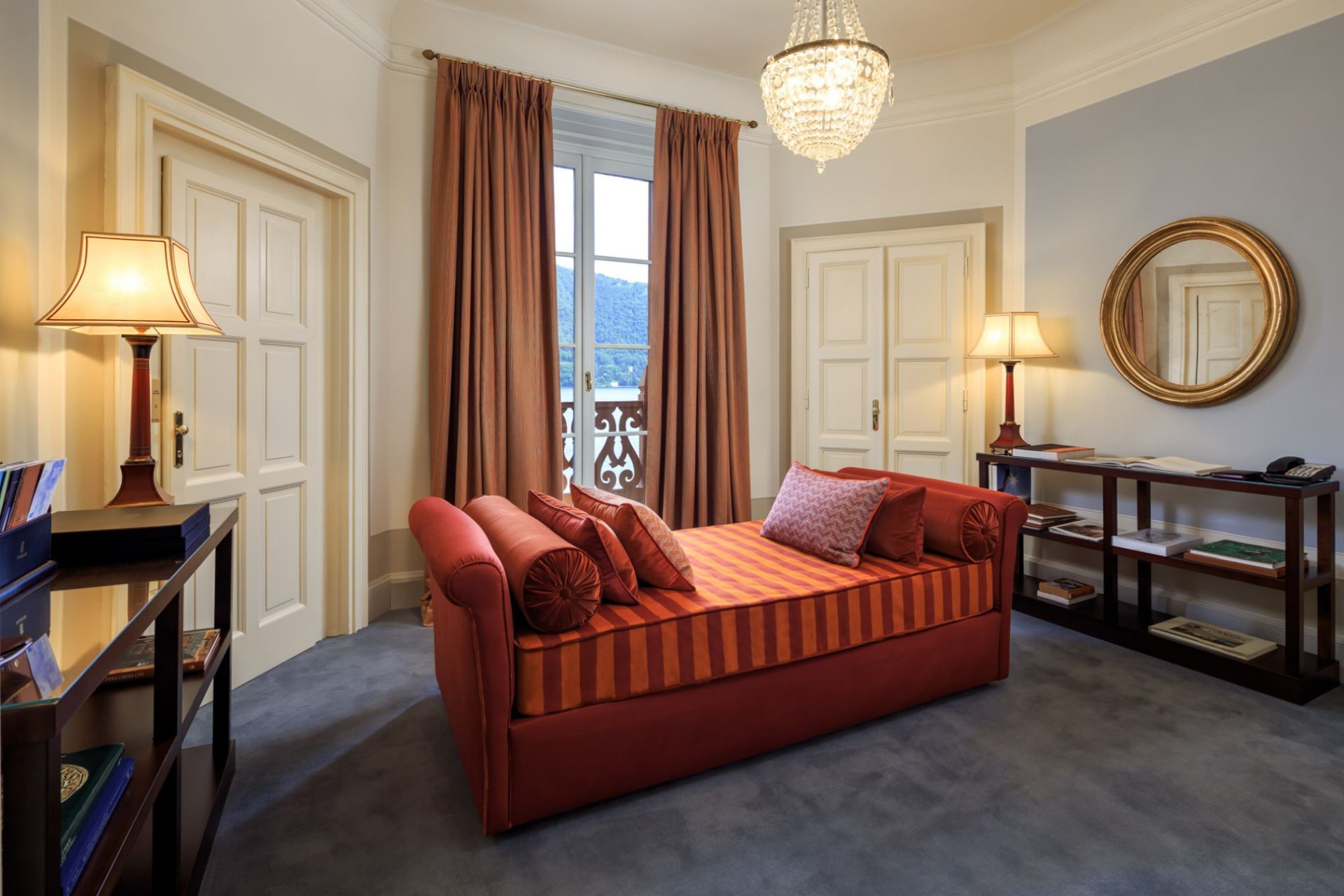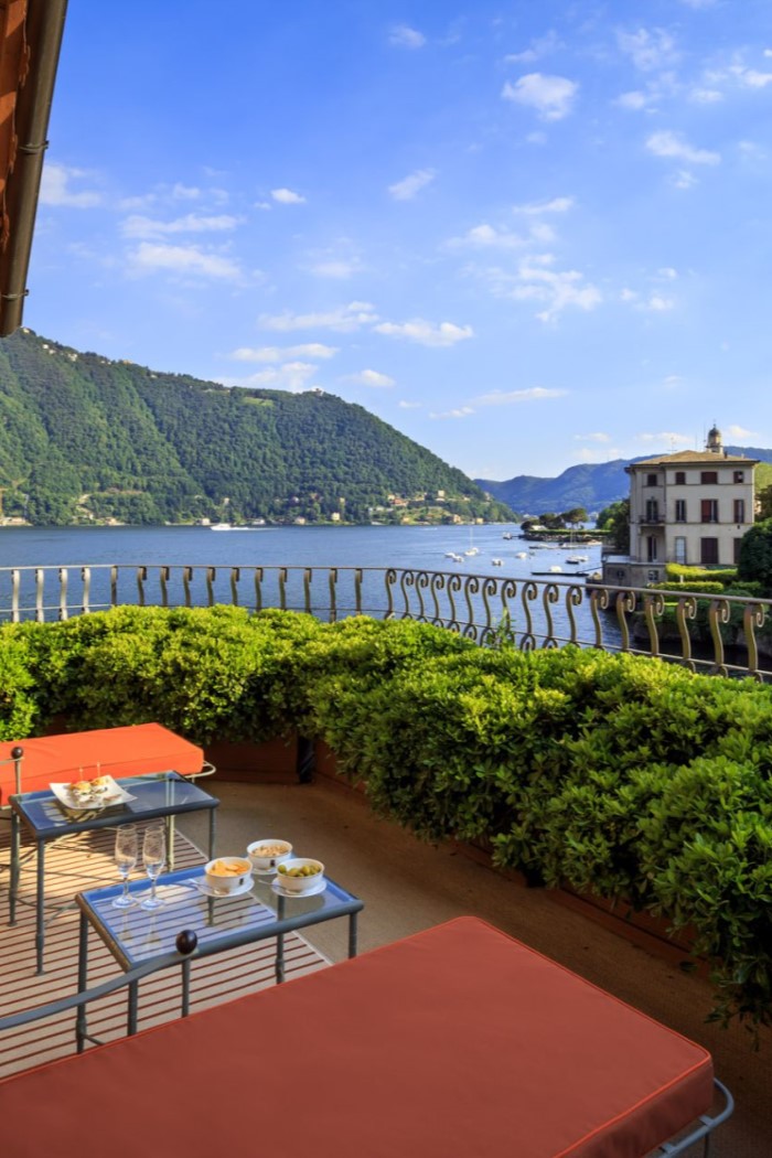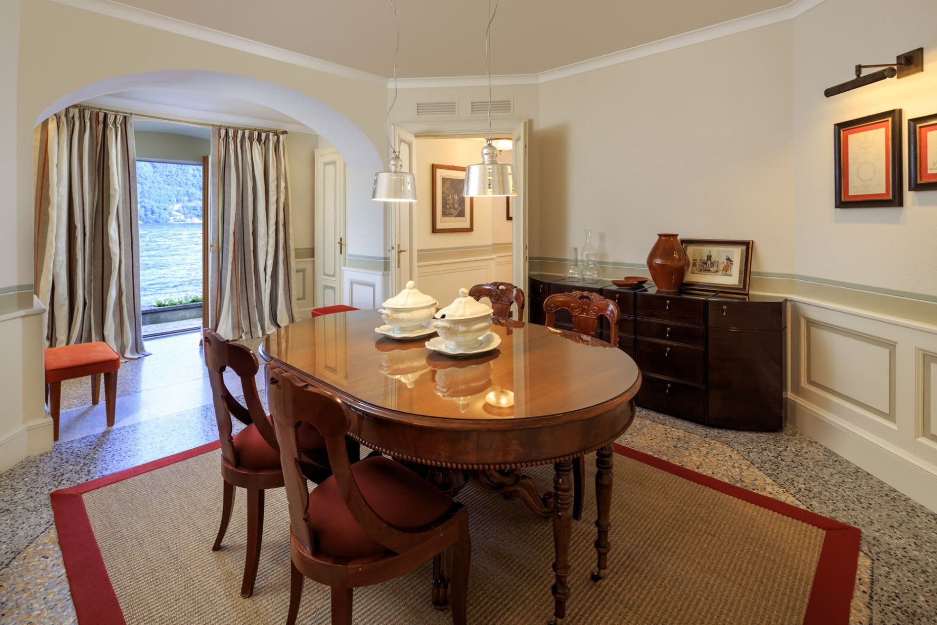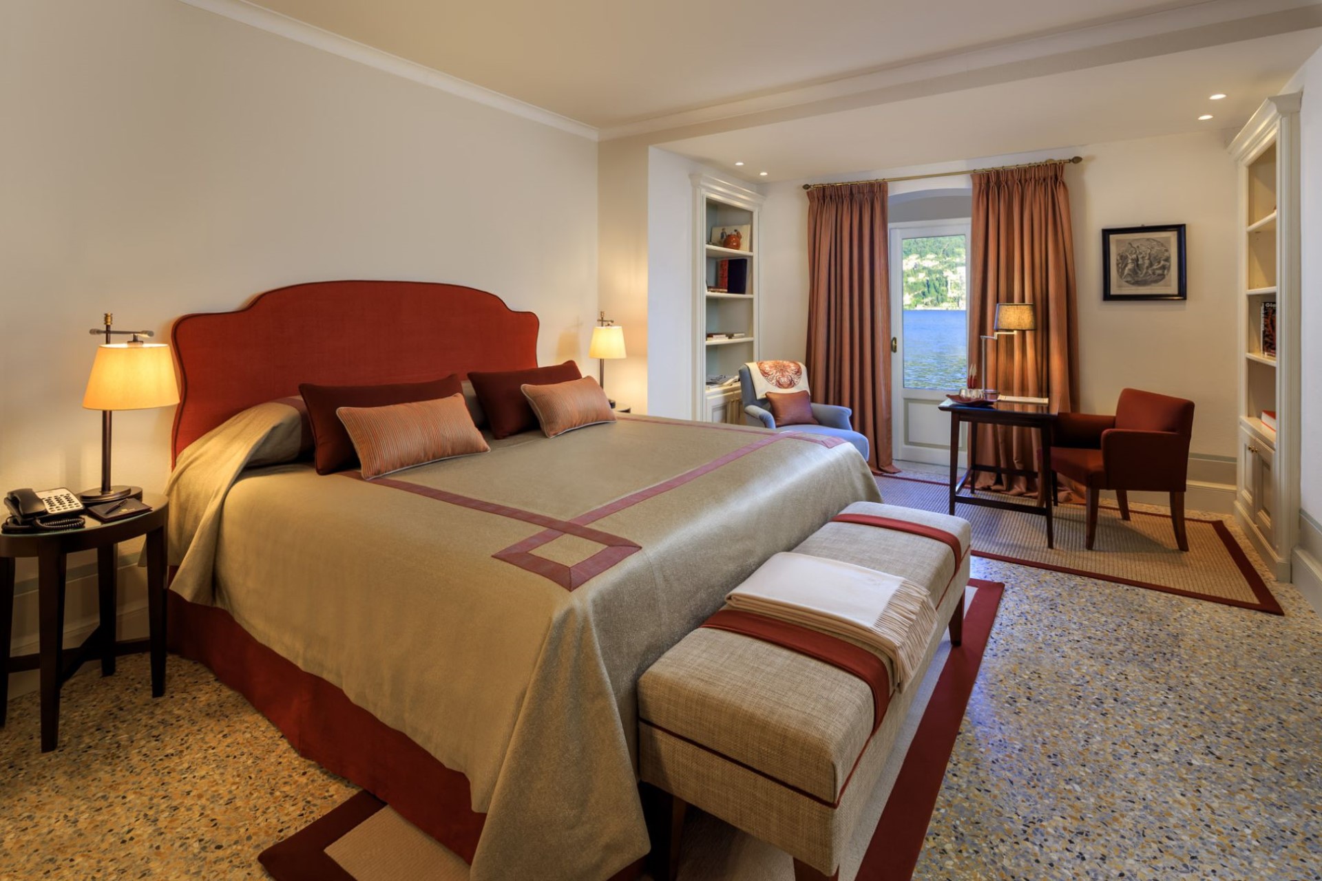 Each bedroom is uniquely decorated with antiques, artworks, and boasts private marble bathrooms. The bedrooms have access to either a balcony or terrace and enjoy beautiful views of the lake.