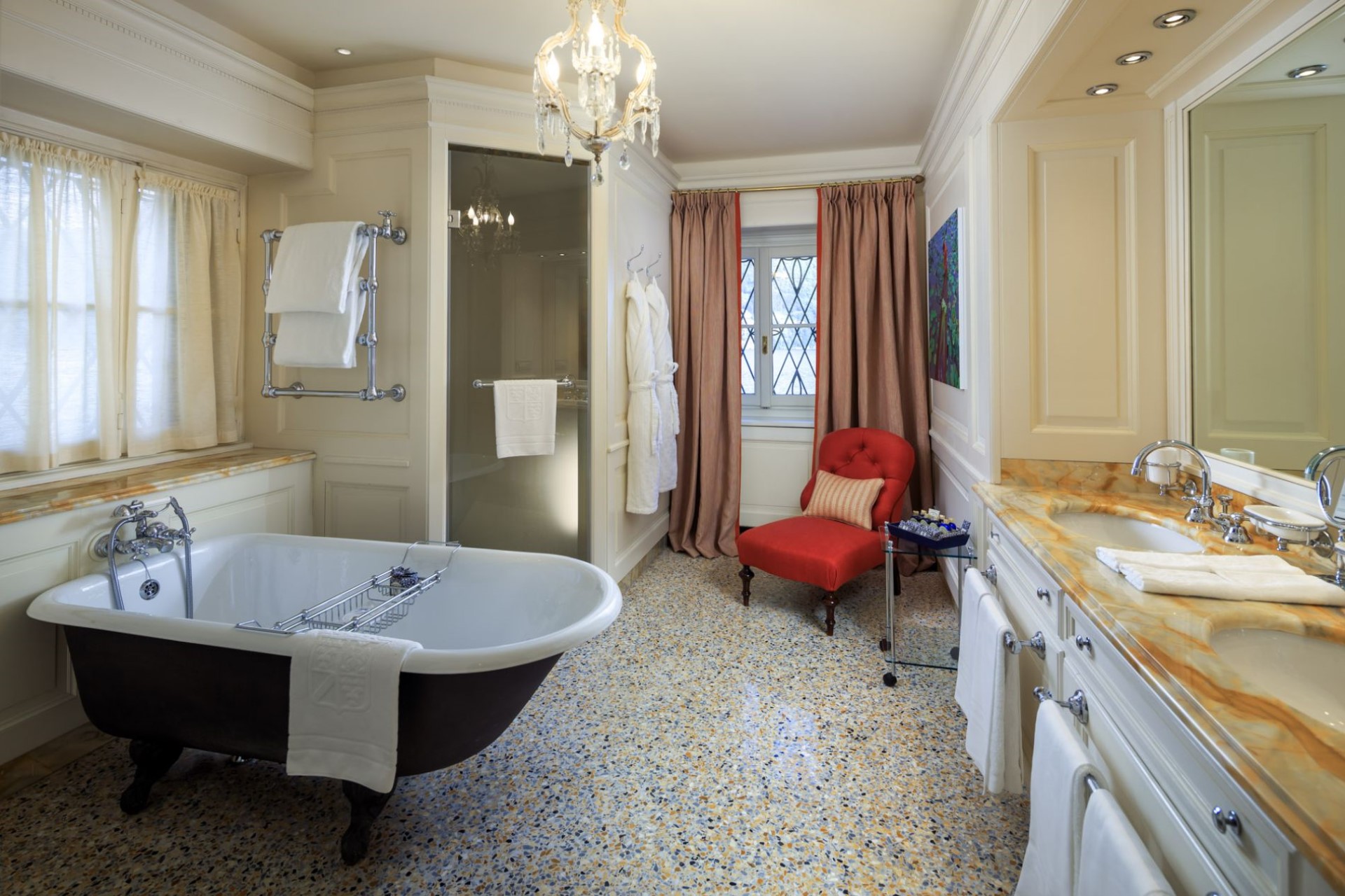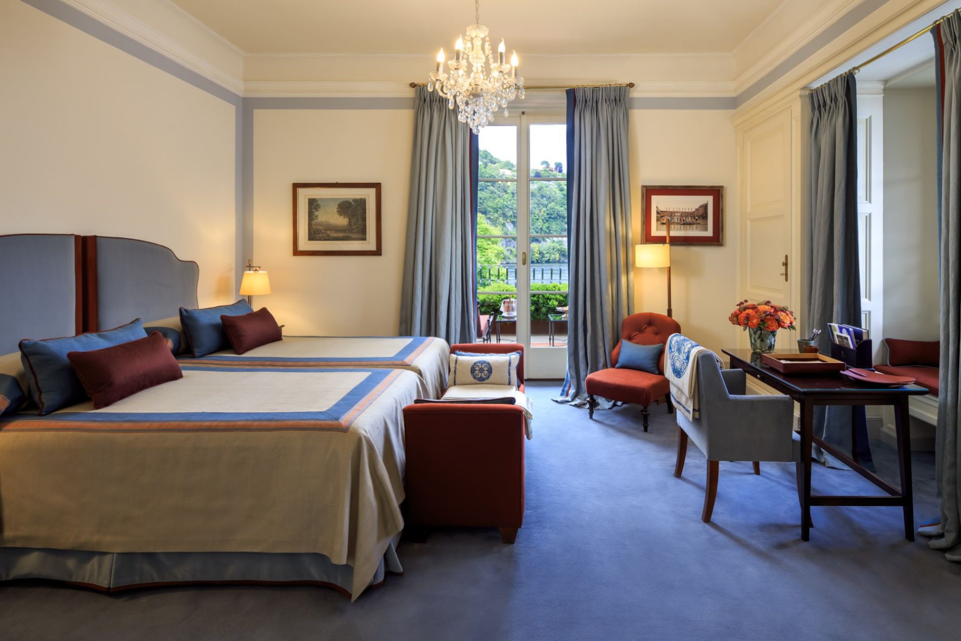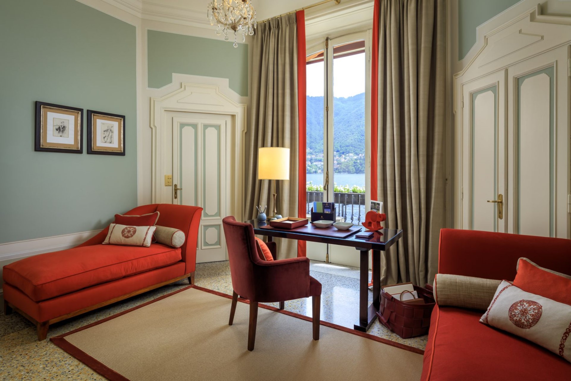 Each bedroom is uniquely decorated with antiques, artworks, and boasts private marble bathrooms. The bedrooms have access to either a balcony or terrace and enjoy beautiful views of the lake.