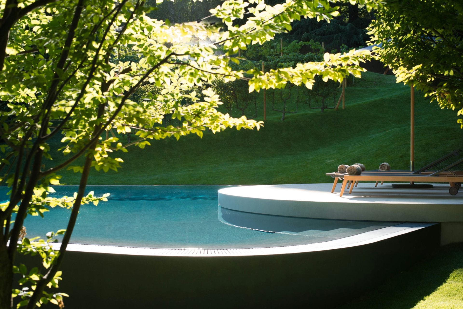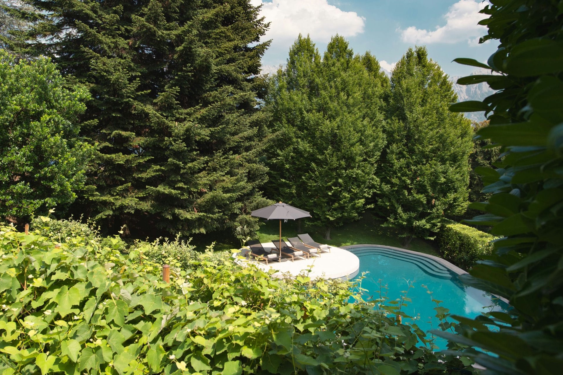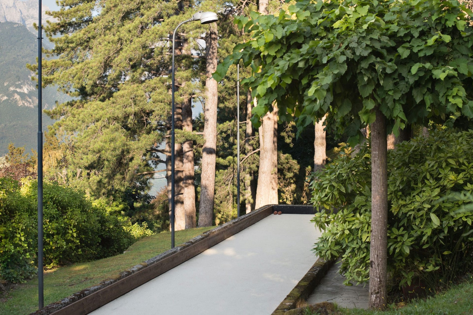 Within a sunny spot in the gardens is a large heated swimming pool lined with loungers for post-swim sunbathing. On the other side of the villa, guests can while away the afternoons with games of traditional bocce under the shade of lanky pine trees.