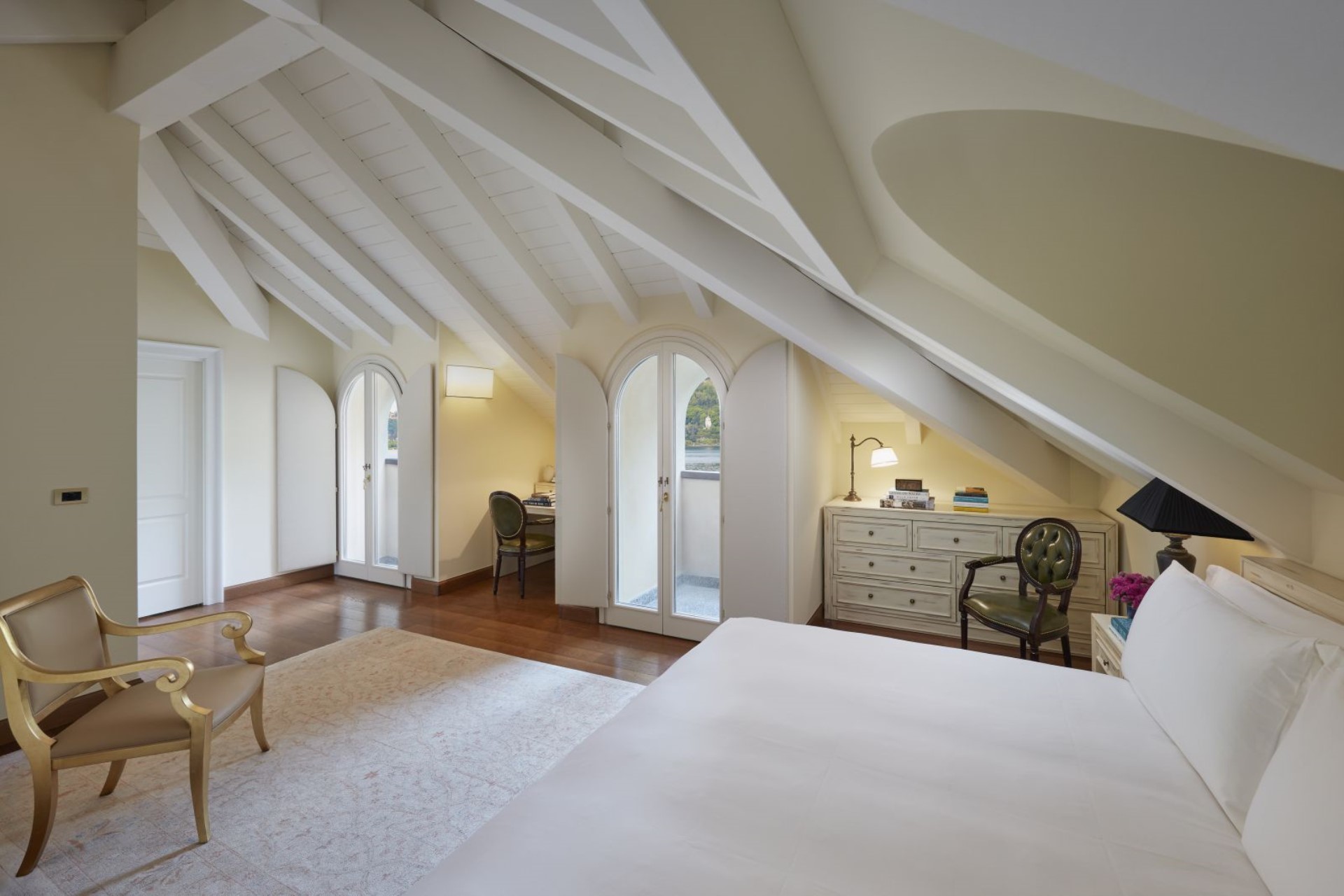 On the first floor there are two bedrooms with en-suite facilities and lake view terraces. On the second floor is a large attic bedroom with a luxurious en-suite bathroom, a walk-in wardrobe and private balconies with lake views.