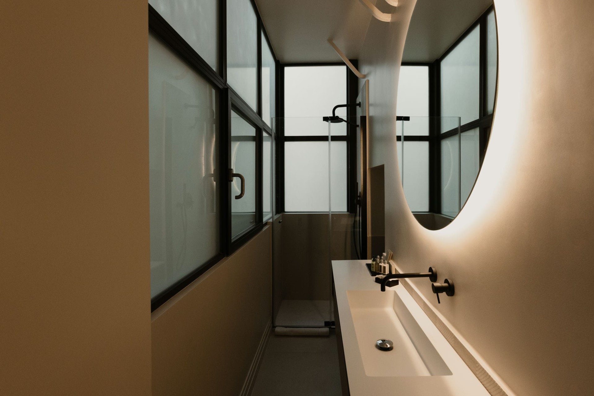 The heart of this luxury home is its cosy yet sophisticated lounge area with plush seating and burnt orange feature walls. Ideal for those working remotely, there is also a cosy study corner with a work desk overlooking an internal courtyard.