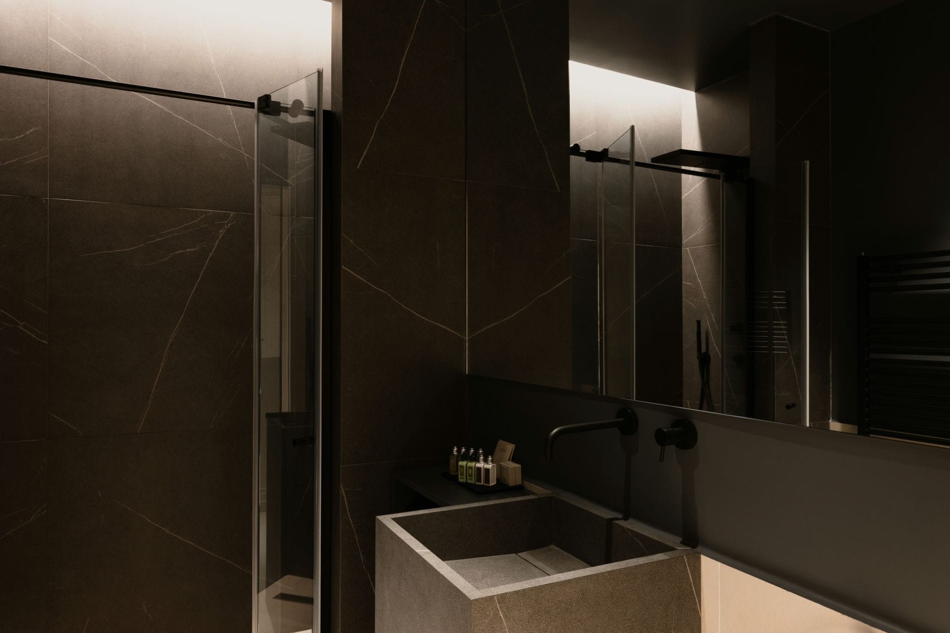 NB: The main living room can be converted into a third bedroom for up to 2 guests on request. It features a king-size sofa bed, a private shower room, and sliding doors for privacy.