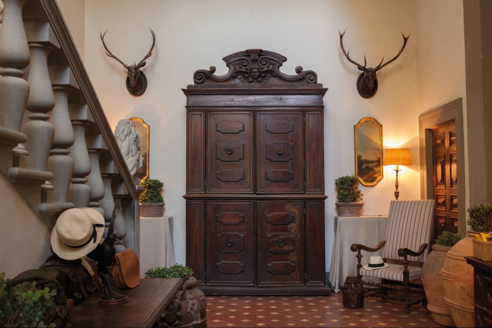 Villa Chianti Classico has two floors, both tastefully decorated and displaying a multitude of paintings. The main living areas are situated on the ground floor and include a reception room with a fireplace and large projection screen, a second living room with a fireplace and a modern TV, as well as an elegant dining room, which has a cosy fireplace.