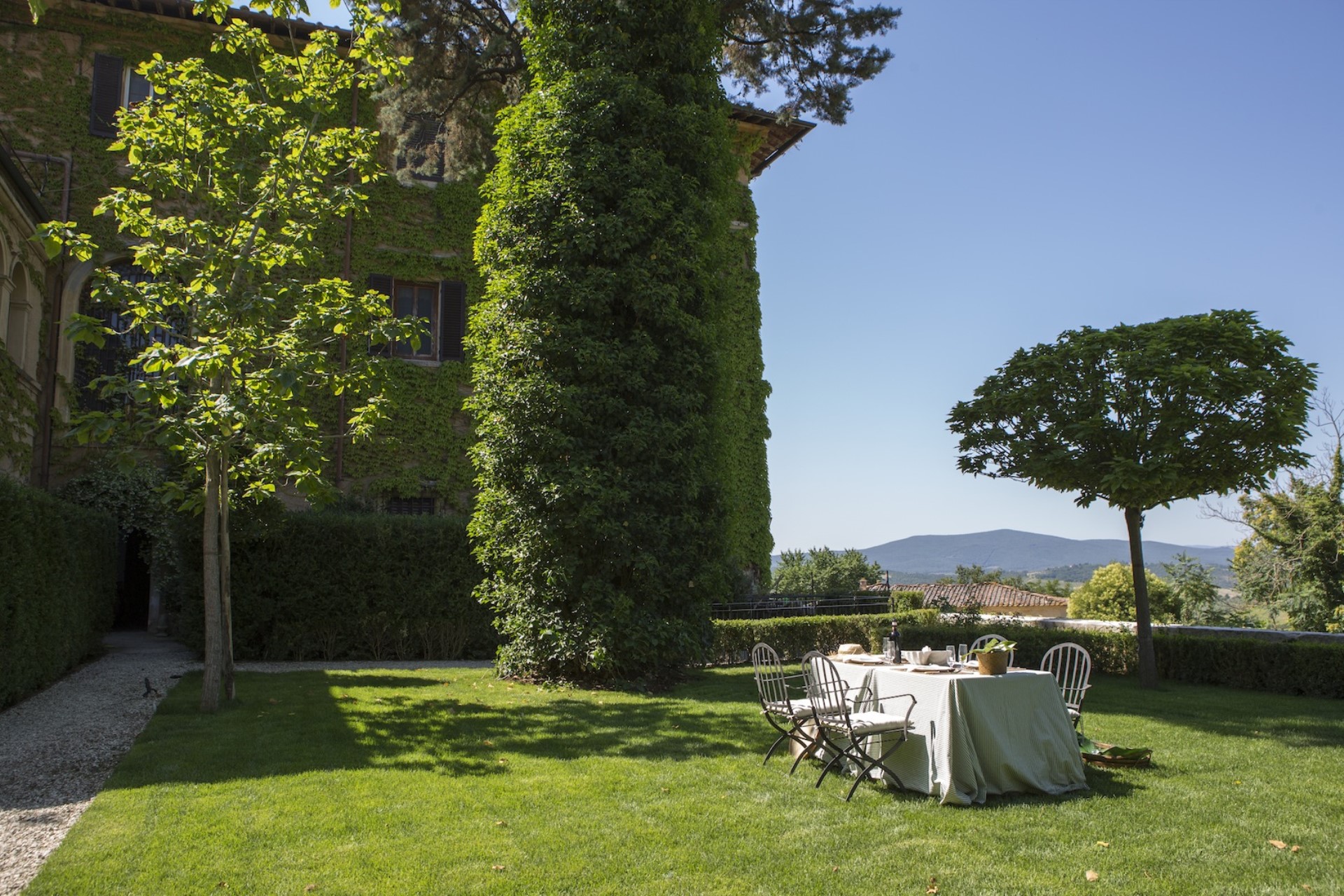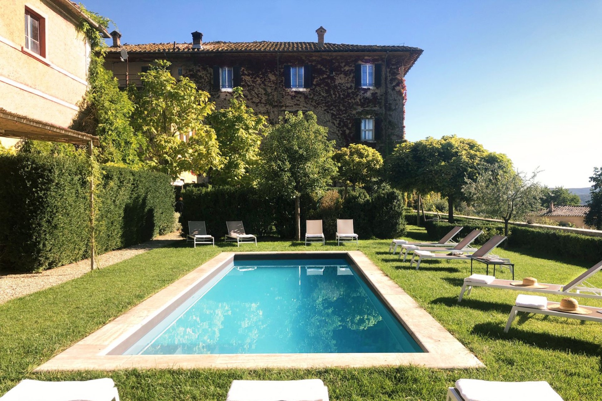 This luxury property has a sophisticated interior; however, its outdoor garden, while impeccably tended, is minimalist so as not to interfere with the beautiful view of the quintessentially Tuscan rolling hills. In the garden, guests will find a swimming pool and al fresco dining table, perfect for enjoying the indulgent climate, good food and wine, and the company of dear friends and family.