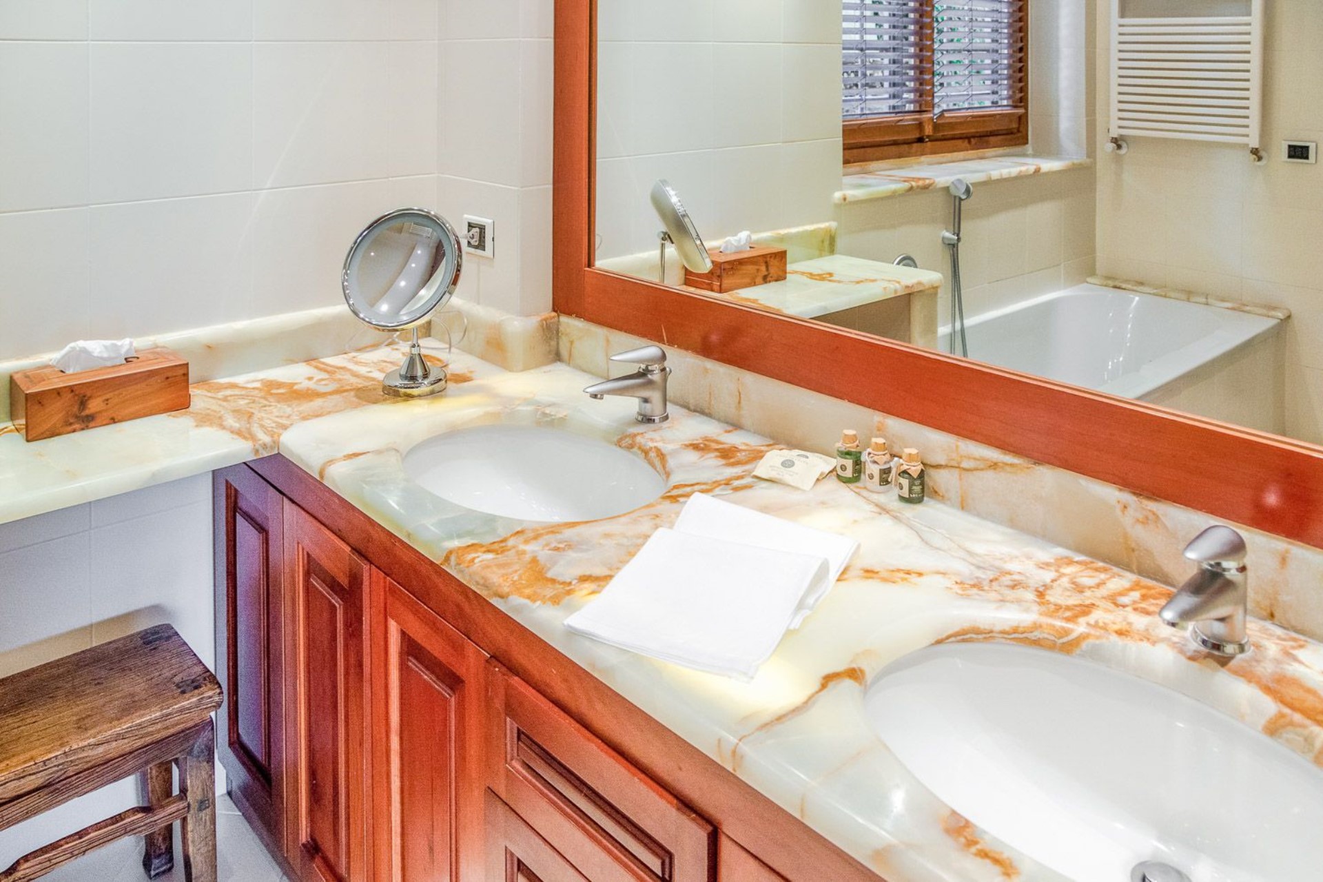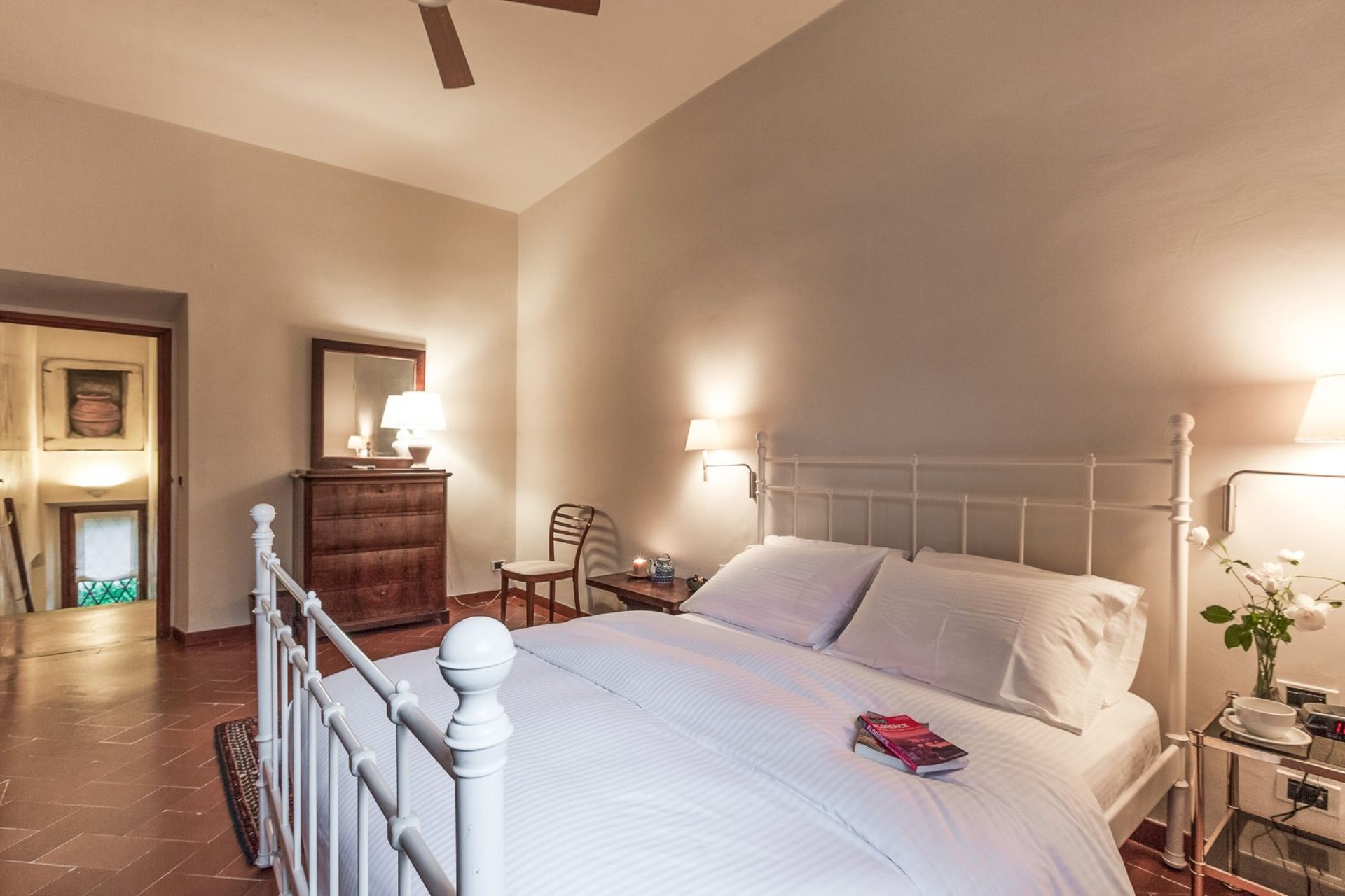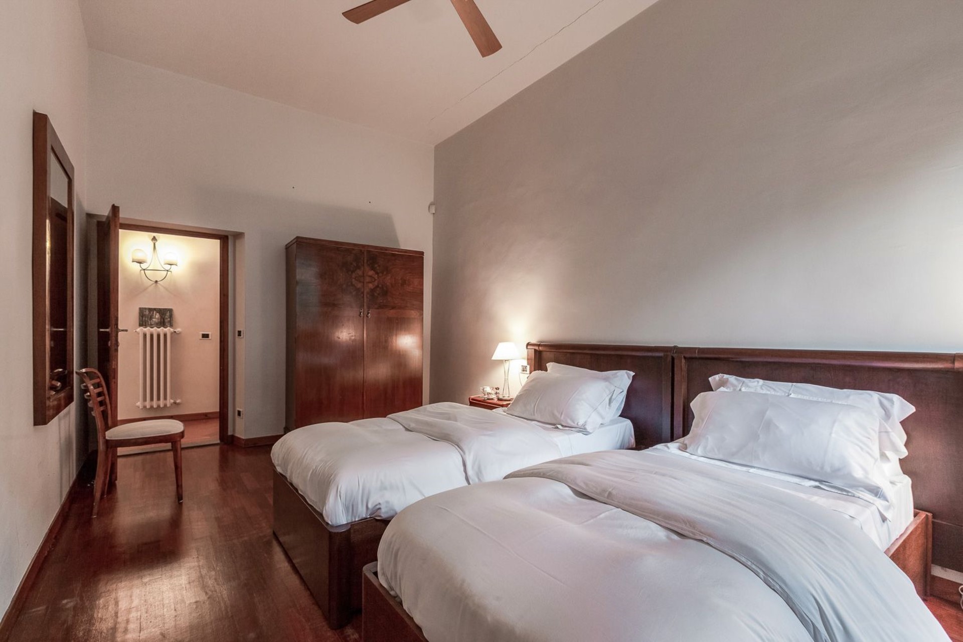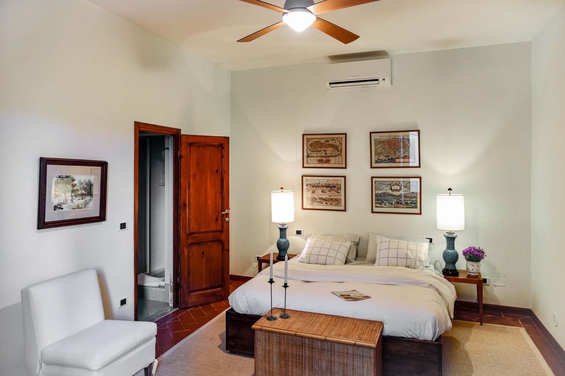 There are five bedrooms, all featuring comfortable beds with fine Italian linens. Three bedrooms boast en-suite bathrooms; one with a king-size bed, the others with twin beds. The third and fourth bedrooms are a queen and twin room respectively, both with private bathrooms.