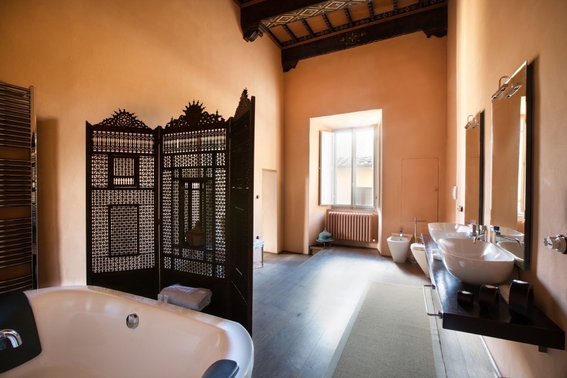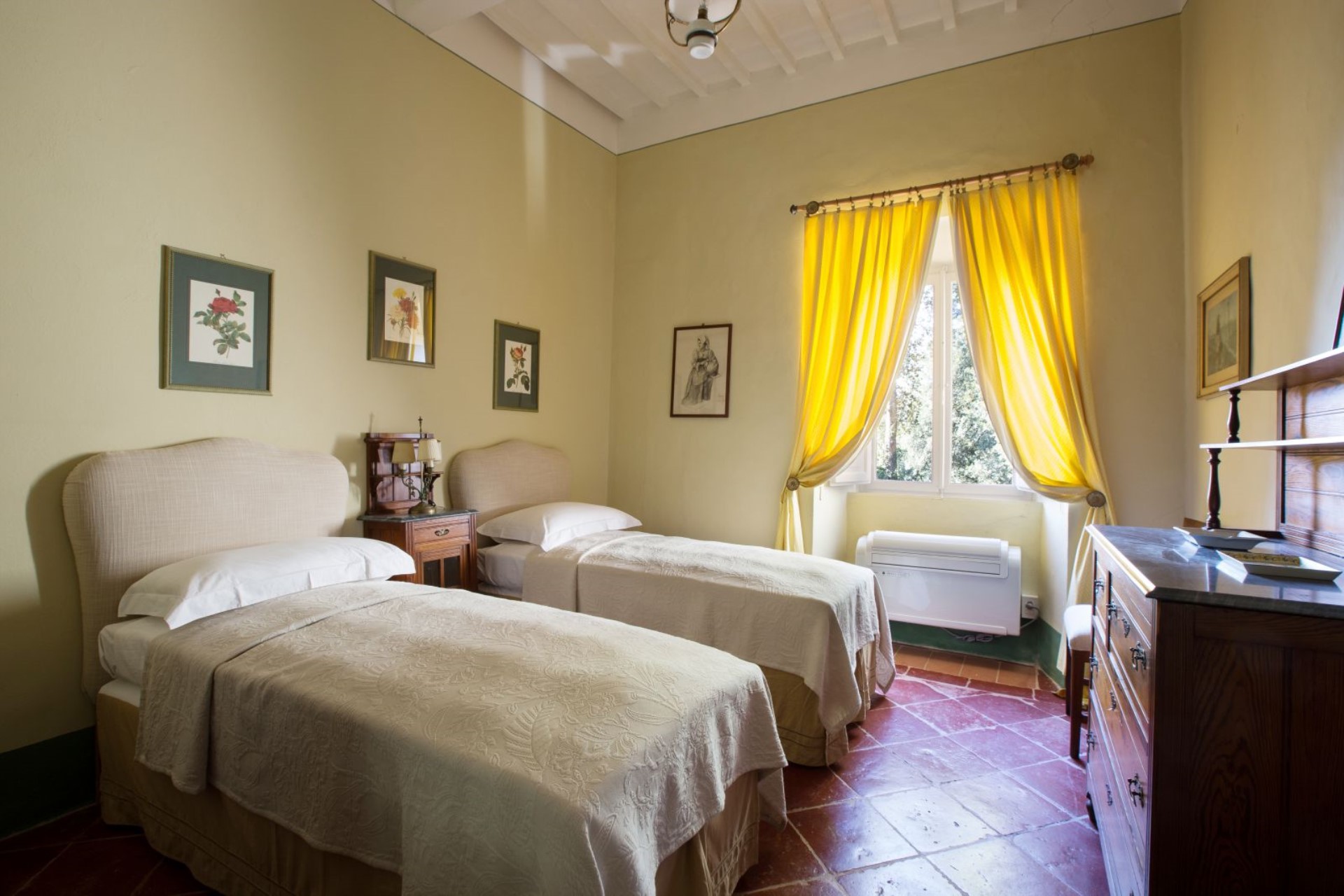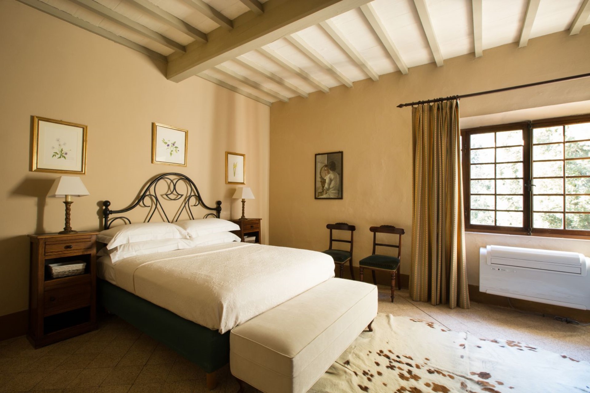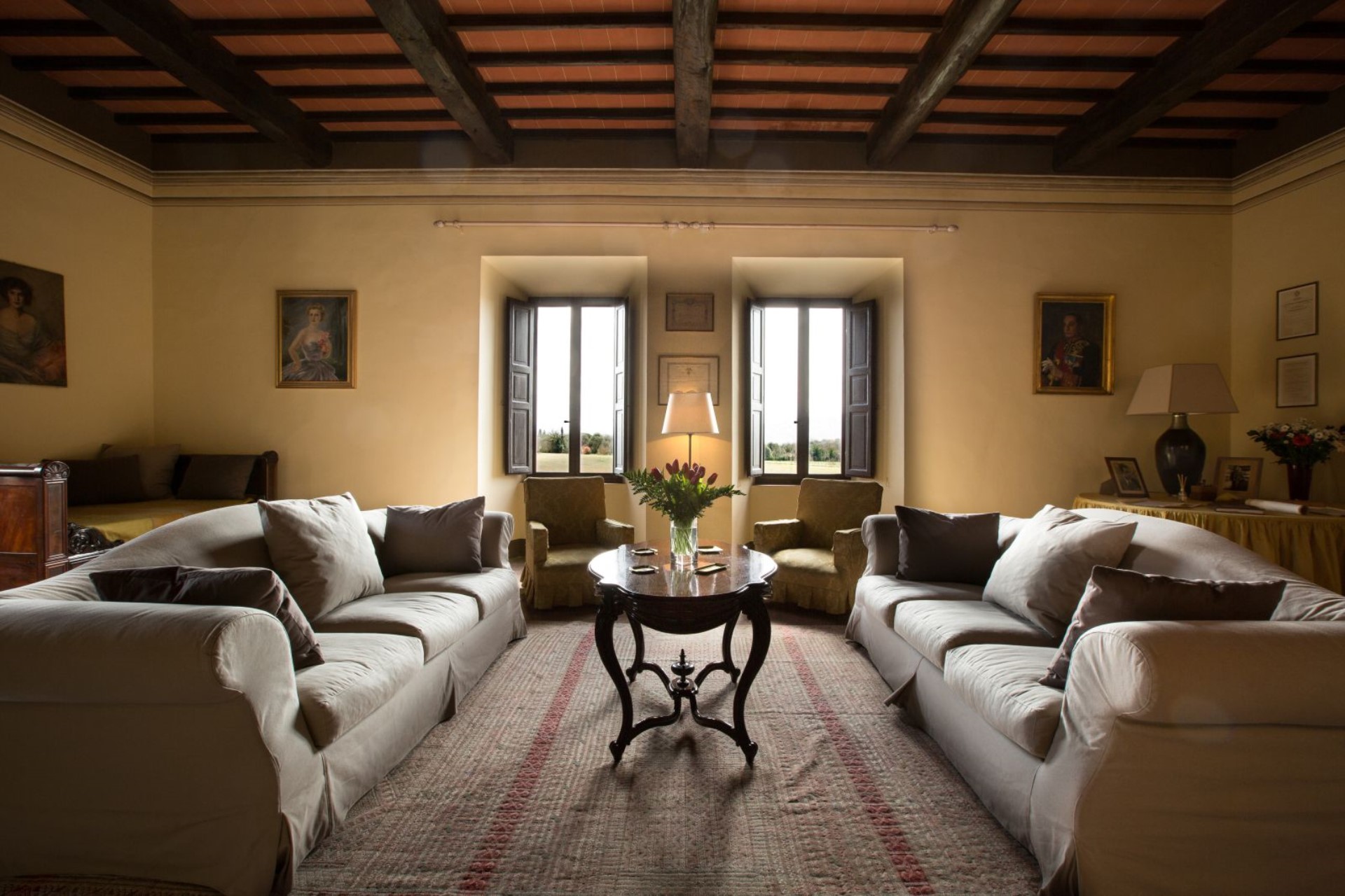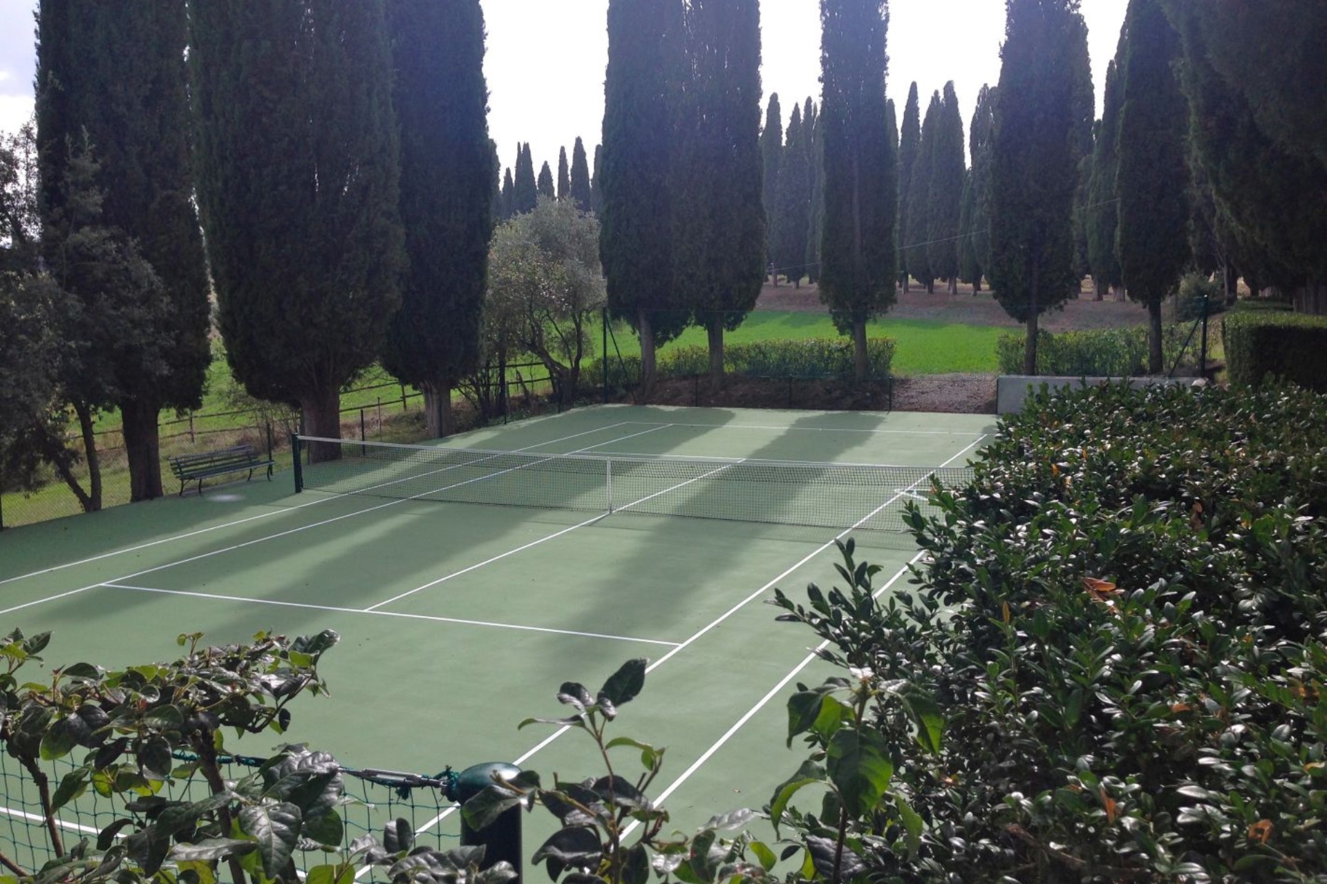 The estate’s grounds feature oak trees, olive groves and vineyards, immersing guests in a true Tuscan landscape. Extensive manicured lawns stretch across the property and guests can enjoy a stunning Italian-style rose garden. Quintessentially Tuscan, the road leading to the estate entrance is flanked by stunning cypress trees.