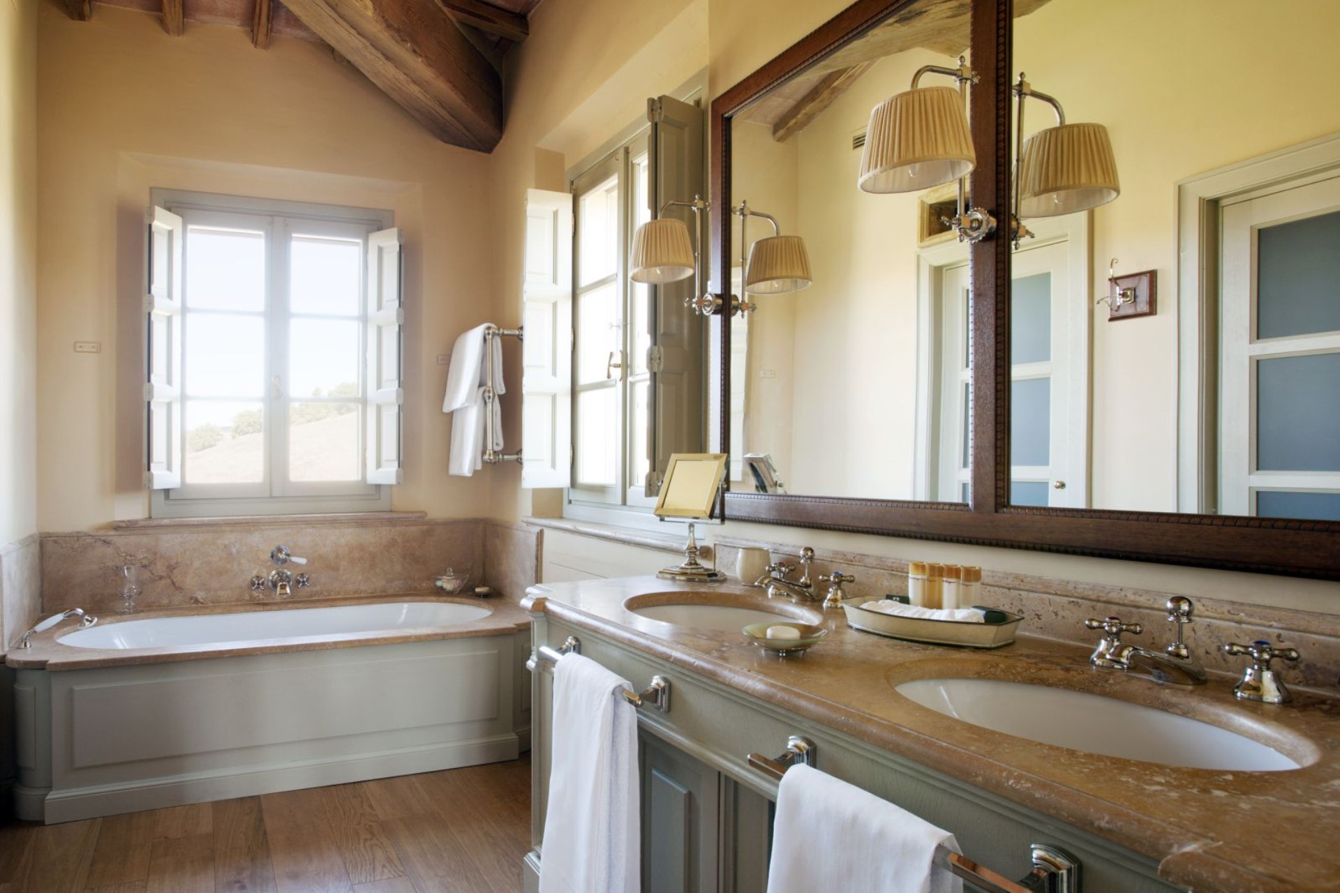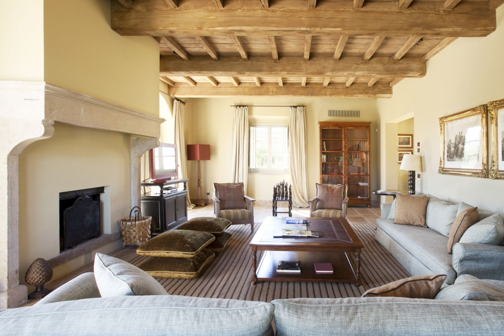 Located in the stunning valley of Val d’Orcia with gorgeous views of Montalcino, the villa offers a heated swimming pool made from natural stone, vast gardens and lawns, and an idyllic Tuscan terrace with seating and outdoor dining areas.