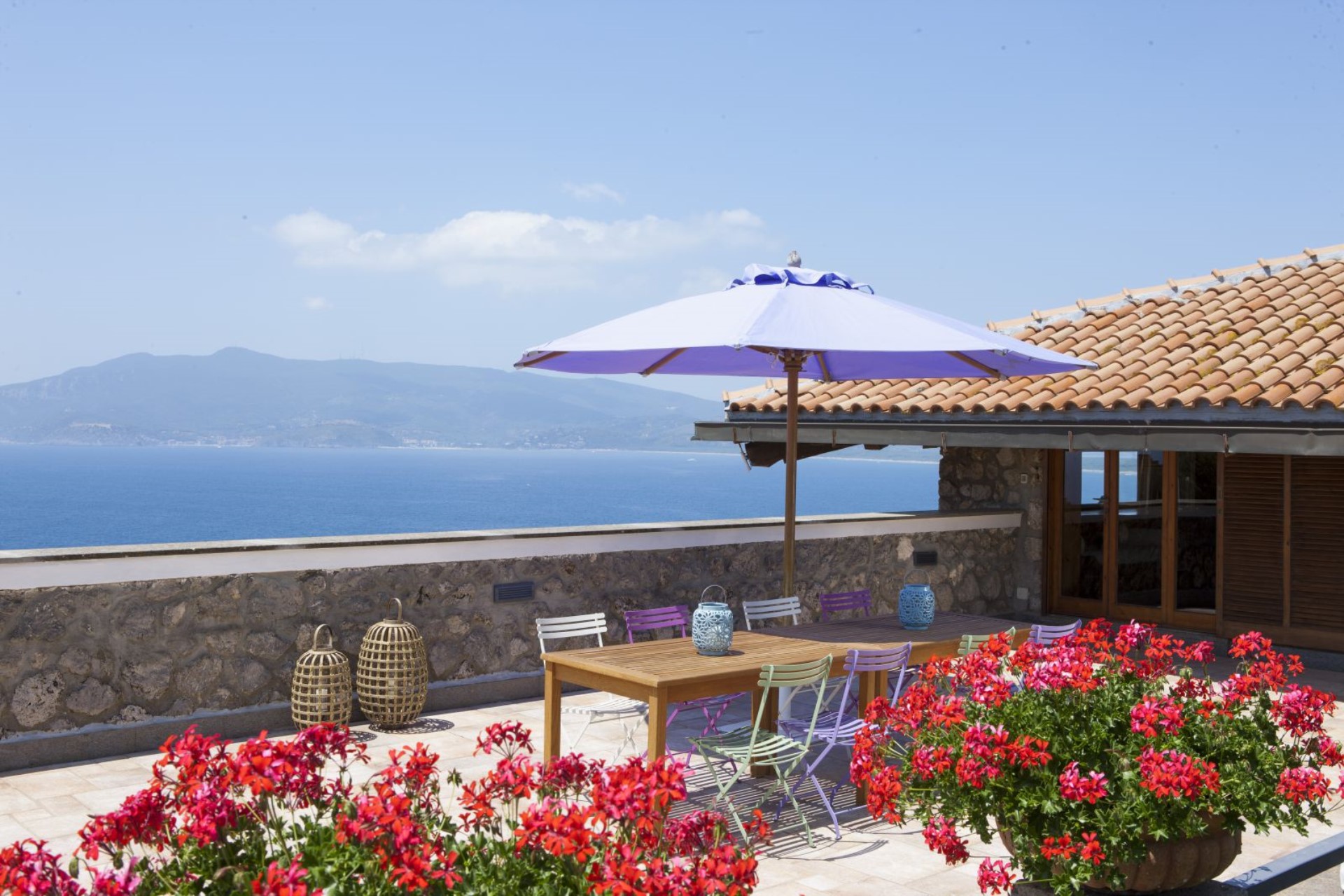 Villa Fe’, with breath-taking views of the Argentario Peninsular and Porto Ercolis, is situated on a hill near the picturesque seaside village of Ansedonia.