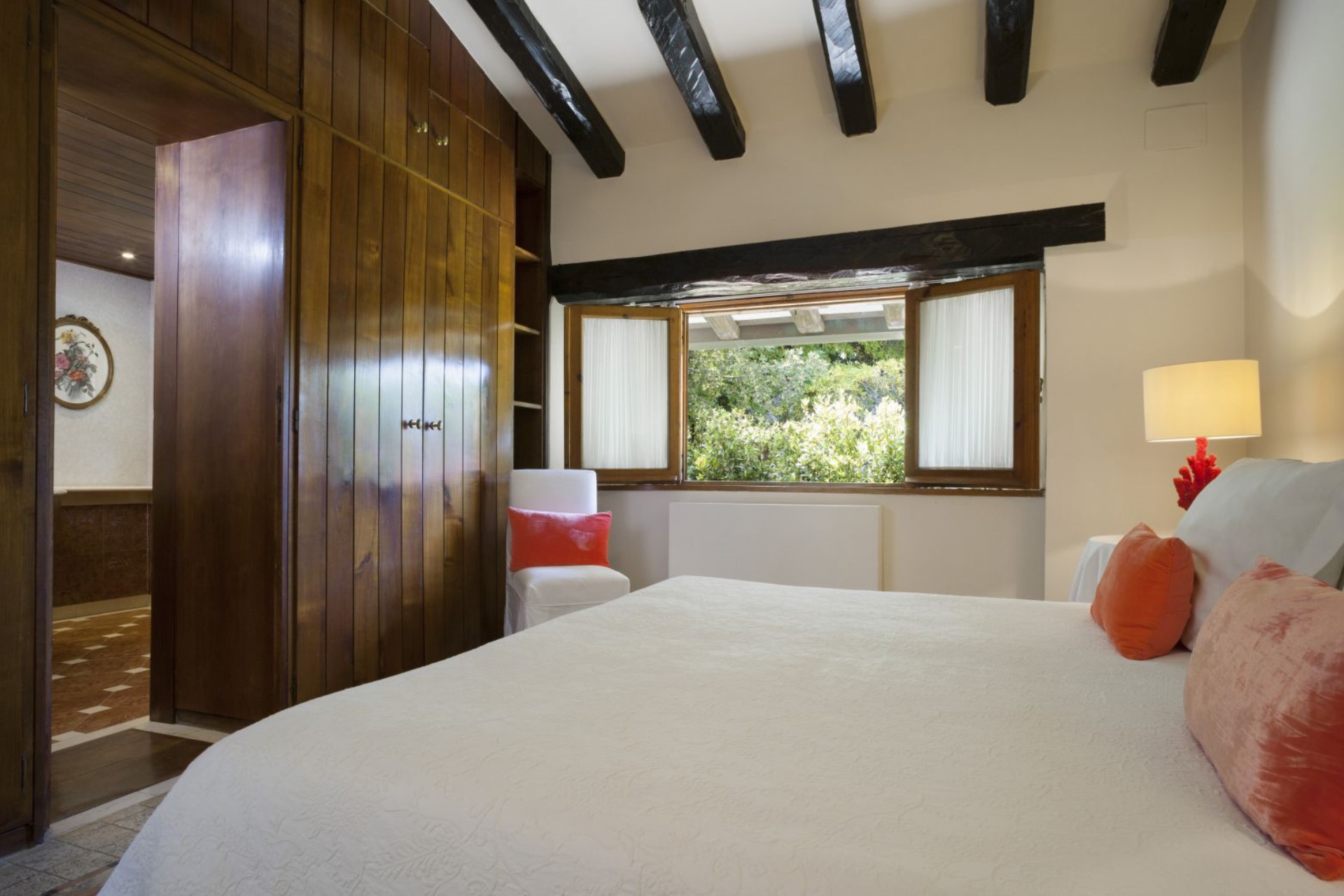 On the same level there is the dining room with a second entrance hall, and the fully-equipped kitchen with access to the rear garden. Near the kitchen, there is a convenient laundry and the small double en-suite bedroom used by the staff.