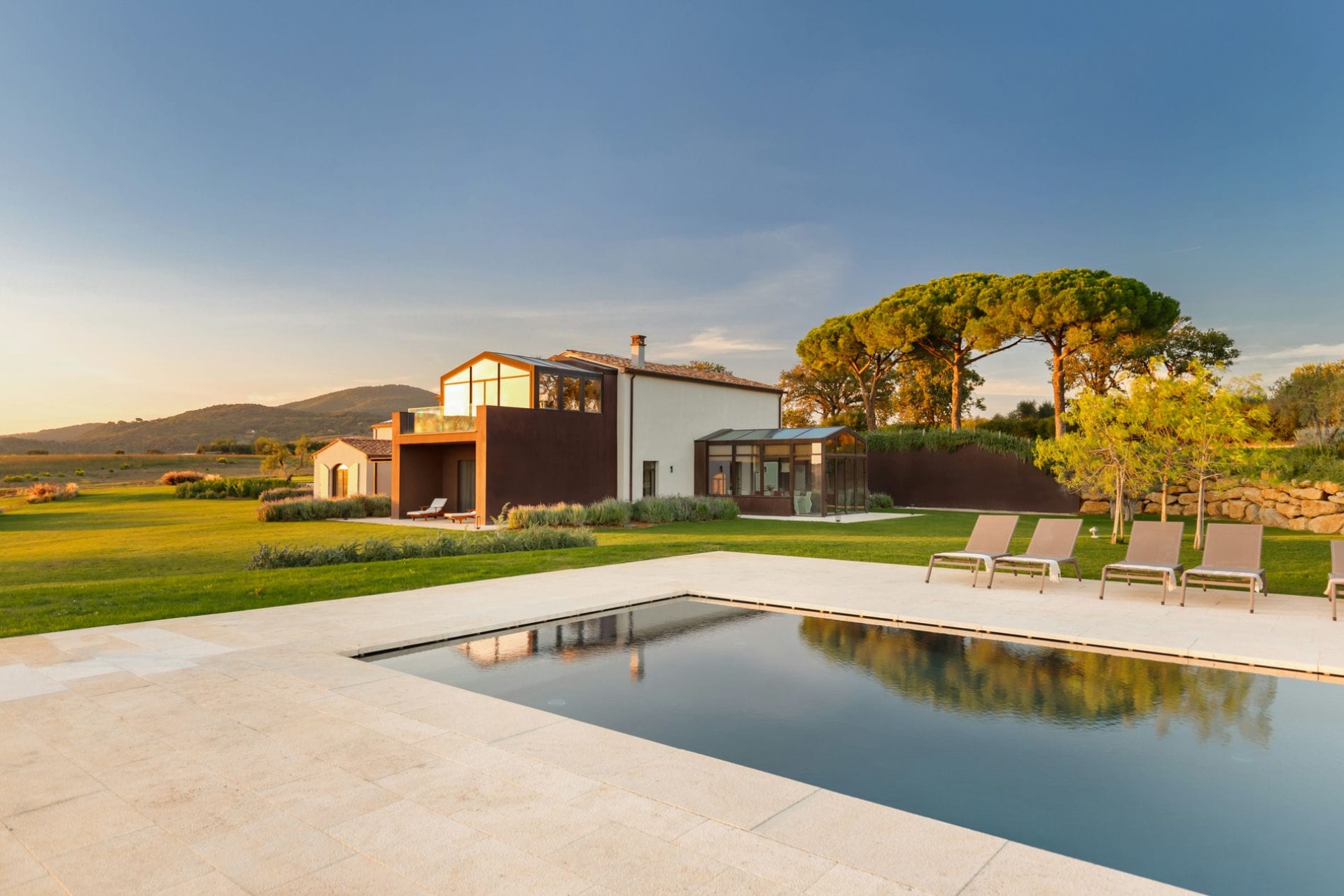 An architecturally stunning and modern farm villa near the beautiful coast of Tuscany