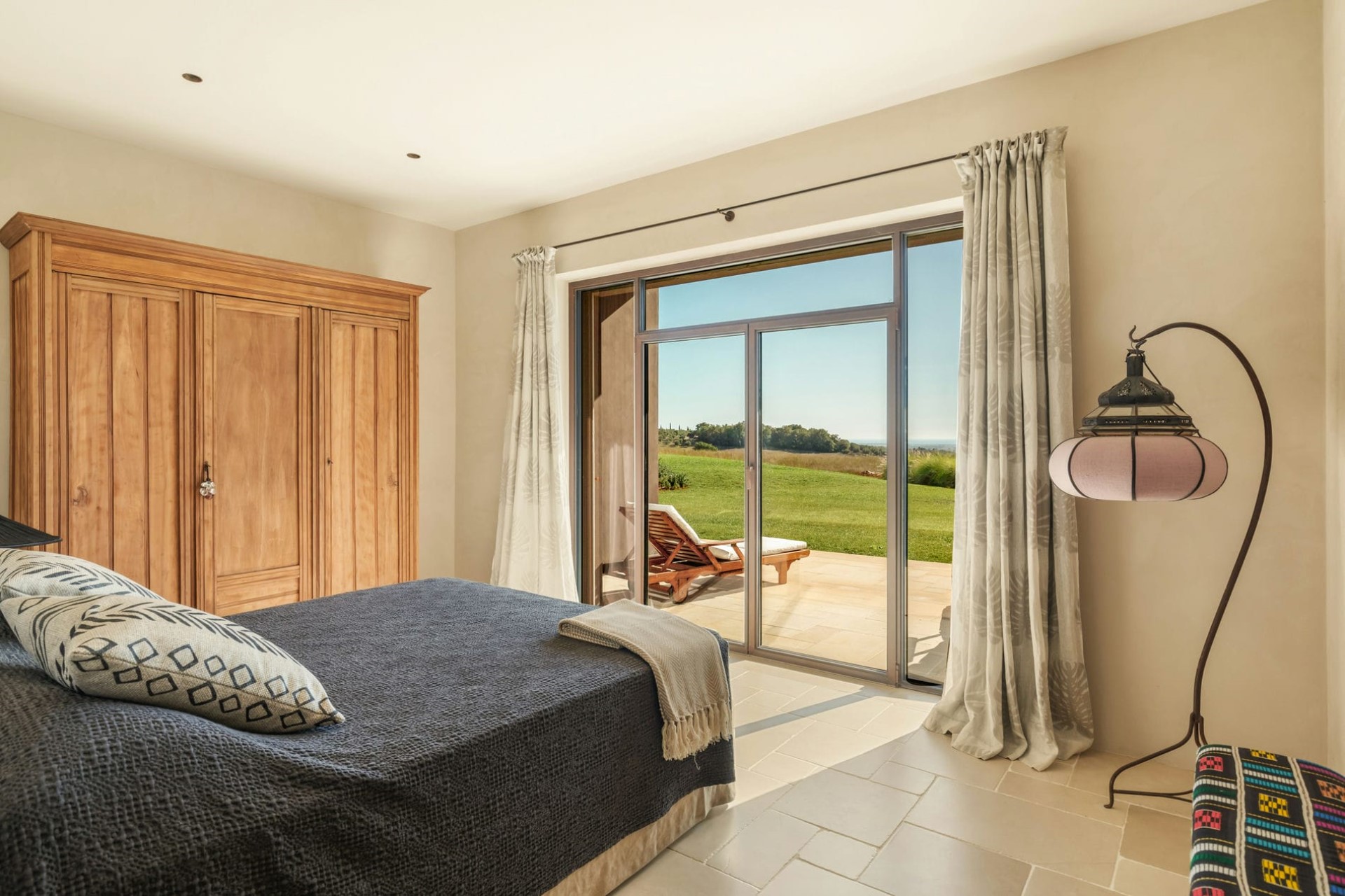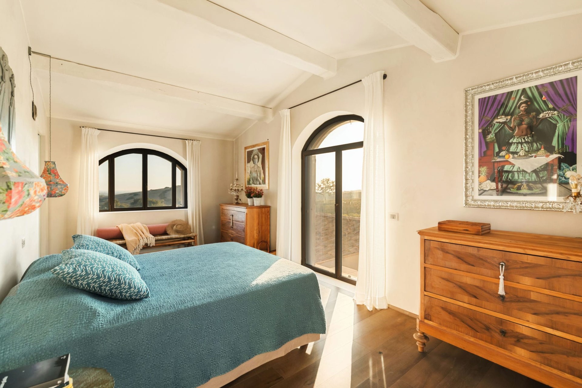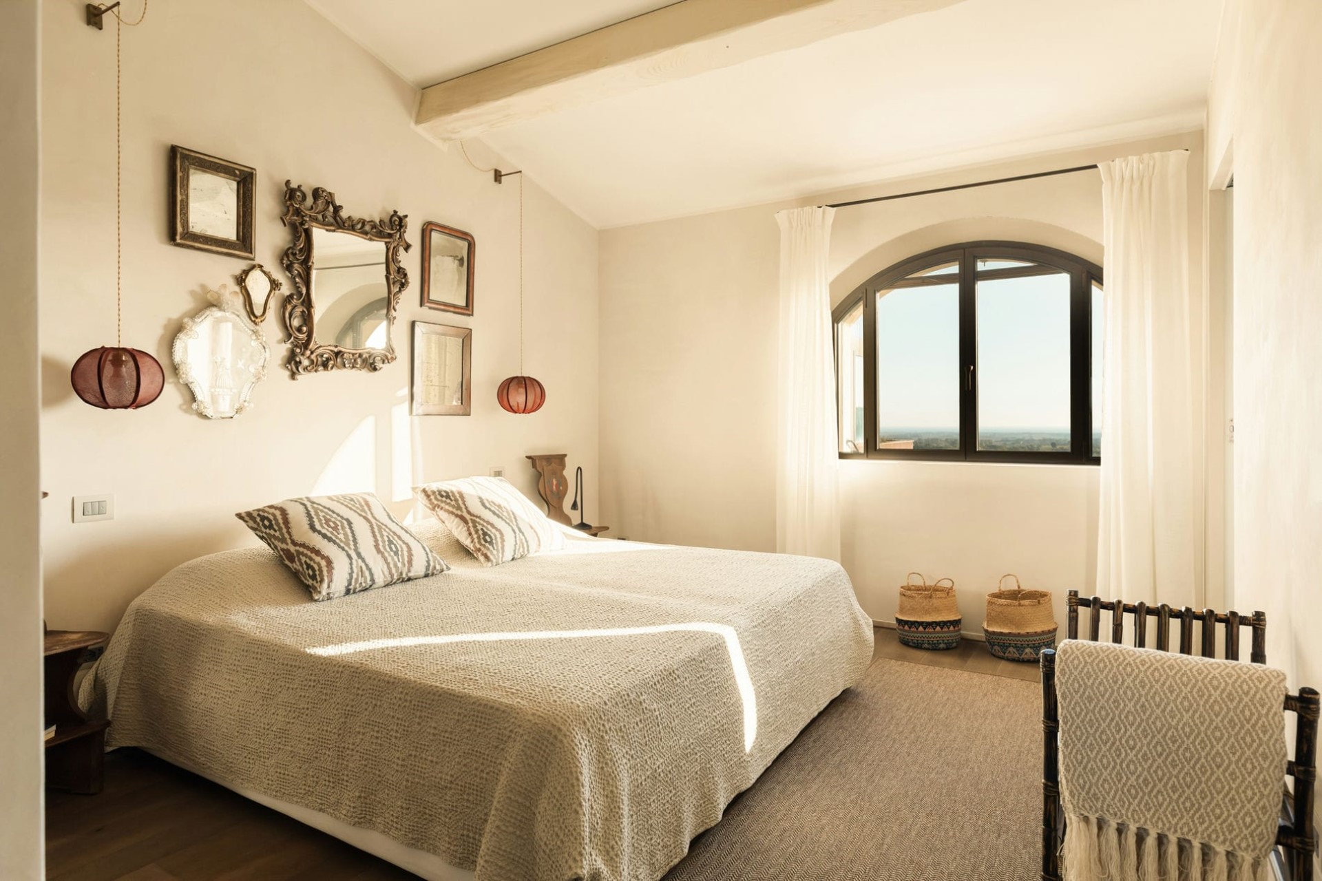 Beside the villa are several more outdoor living spaces. The ground floor terrace with lounge and dining area is perfect for enjoying a morning coffee, al fresco lunches, or evening drinks with sunset views. The courtyard offers a shady space to relax, whilst the first-floor terrace boasts sweeping views across the countryside right down to the sea.