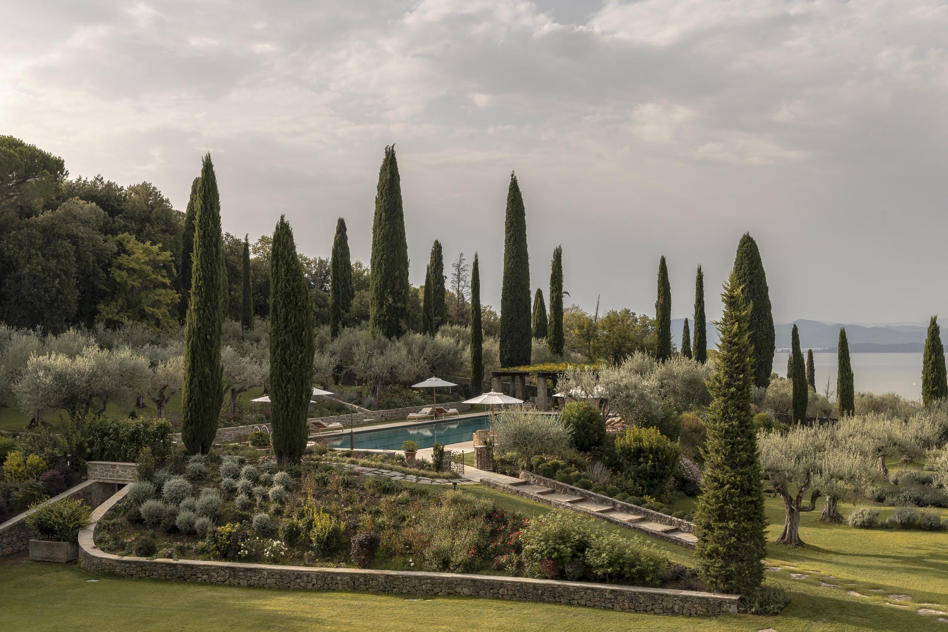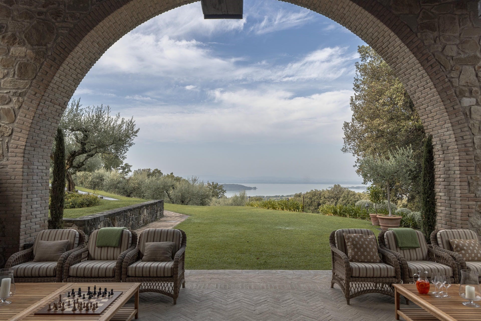 The property enjoys stunning views of Lake Trasimeno, which is just five minutes’ drive away, along with the town centre of Passignano sul Trasimeno.