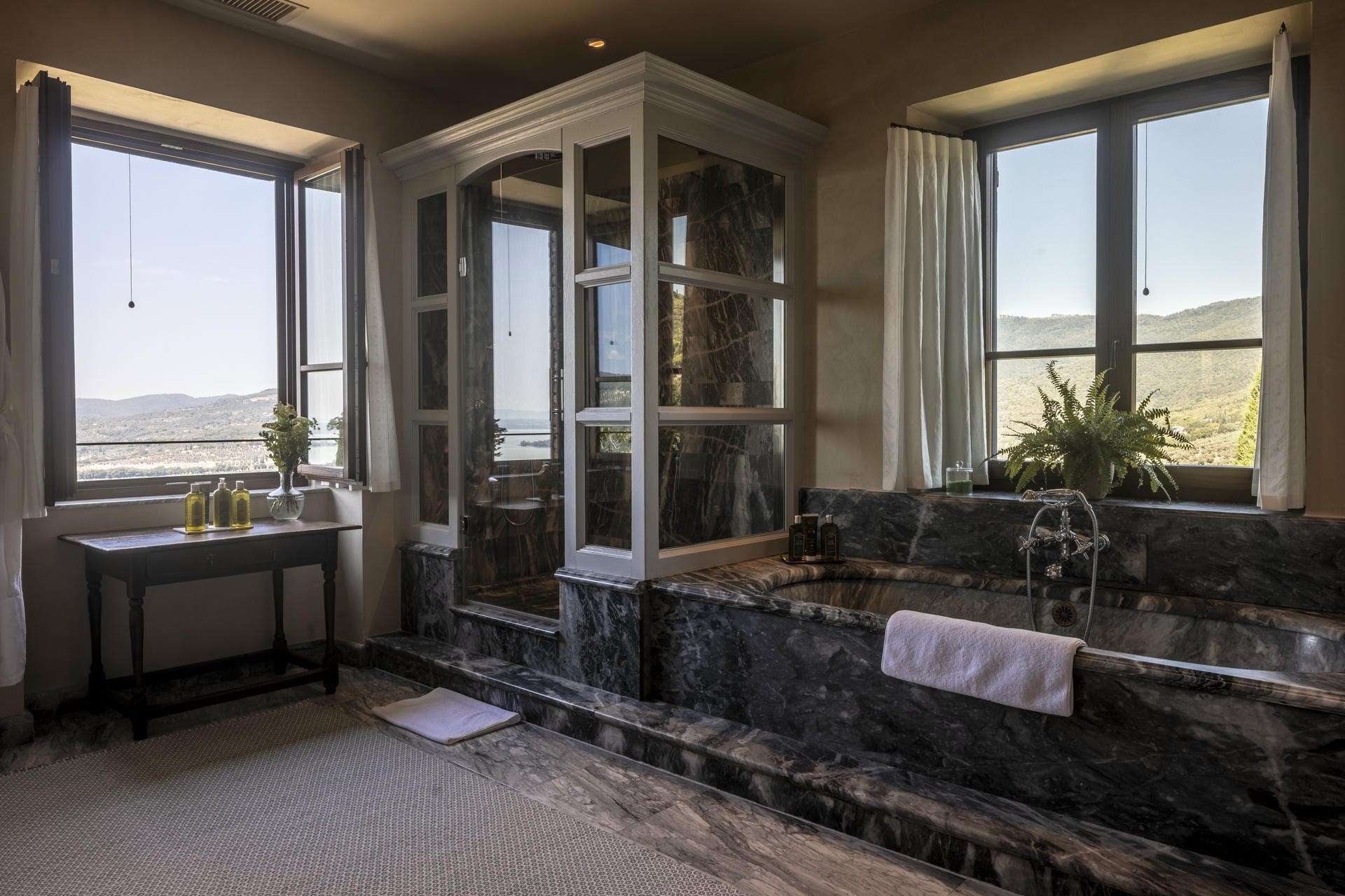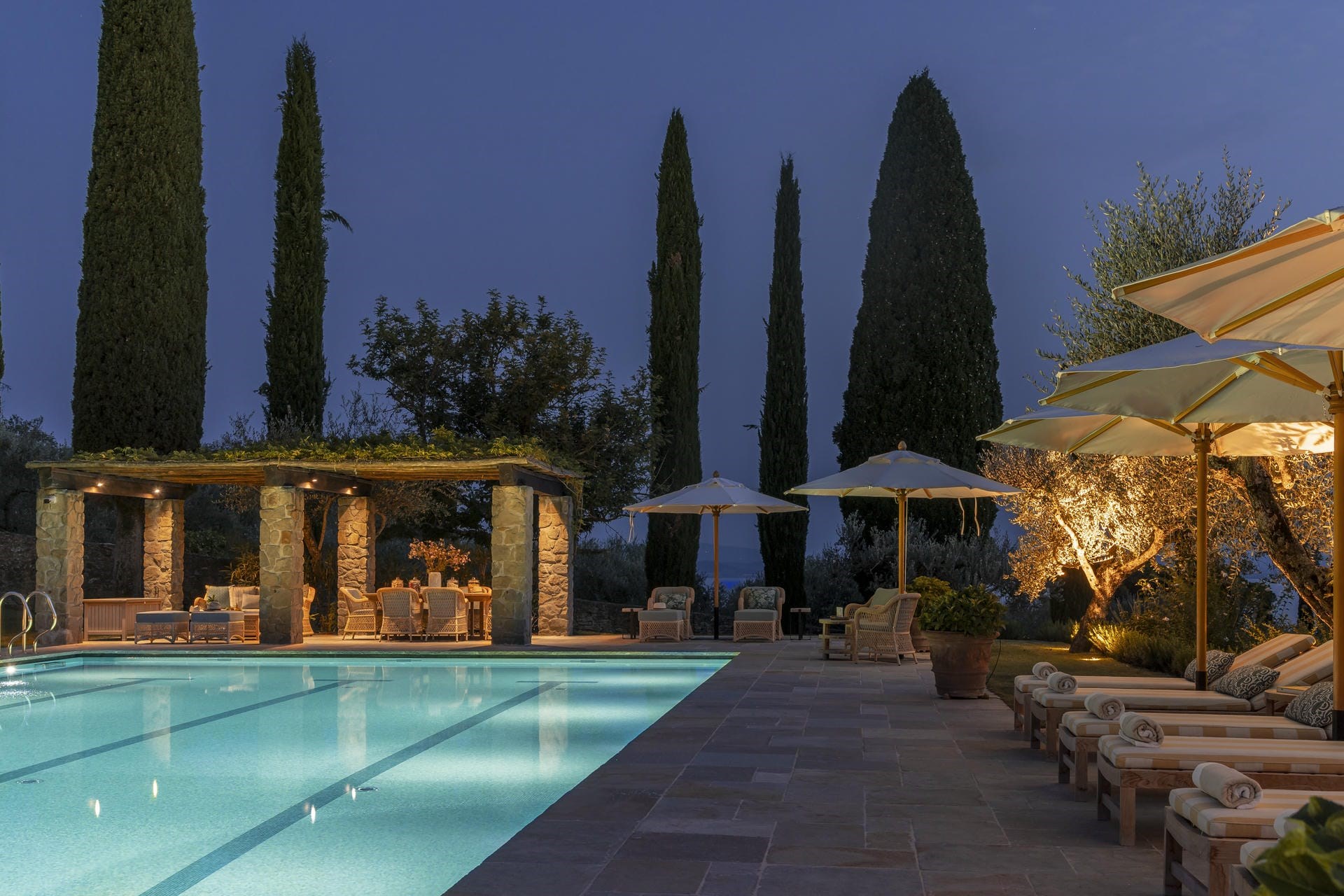 Ideal for a relaxing stroll, the grounds are home to olive groves, tidy vineyards, grapevine-covered trellises, and a forest reserve, perfect for truffle hunting in season.