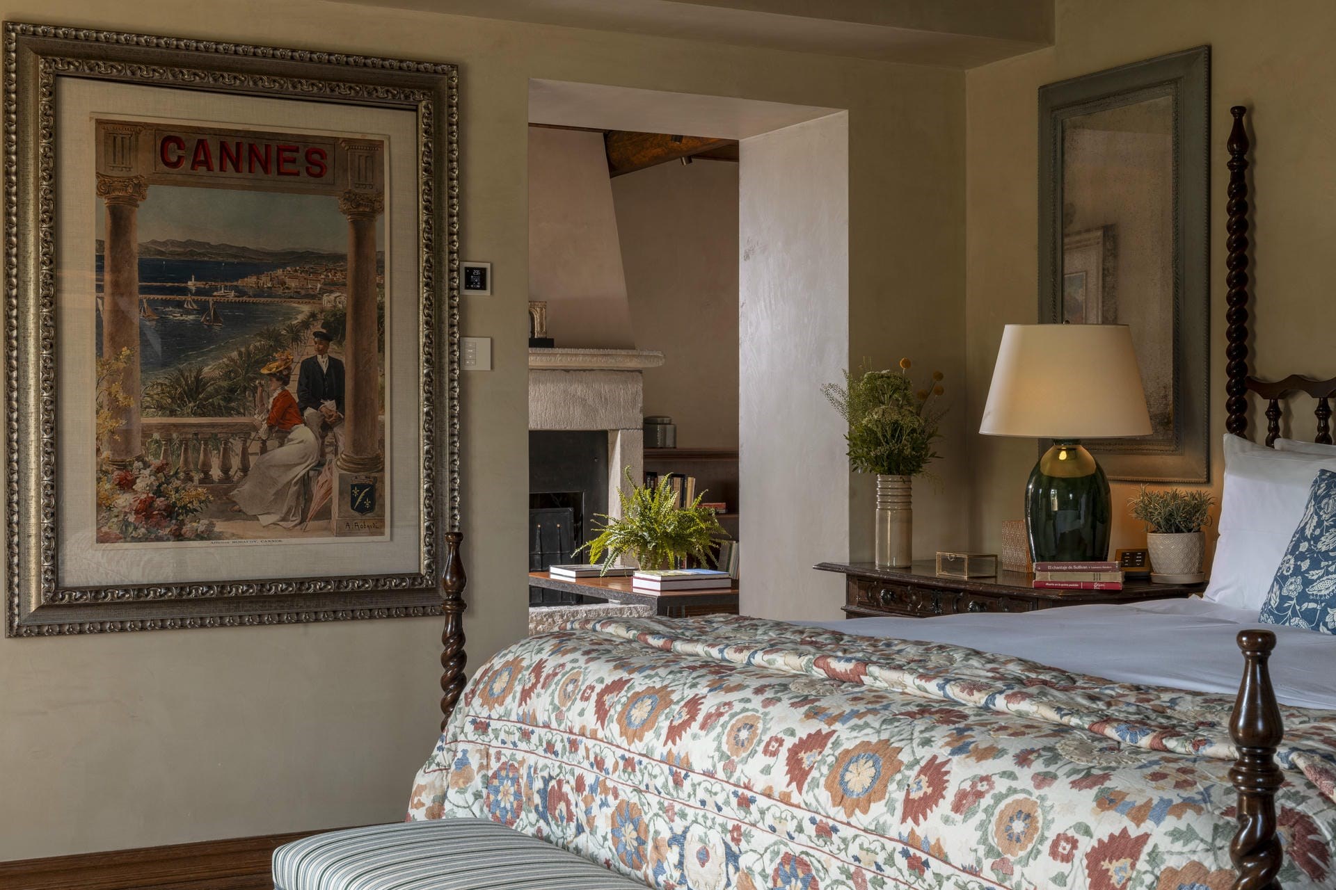 Suite Five (Master) – king-size bed, sitting area with fireplace, parlour, study with fireplace, en-suite bathroom with bathtub & separate shower, and private balcony