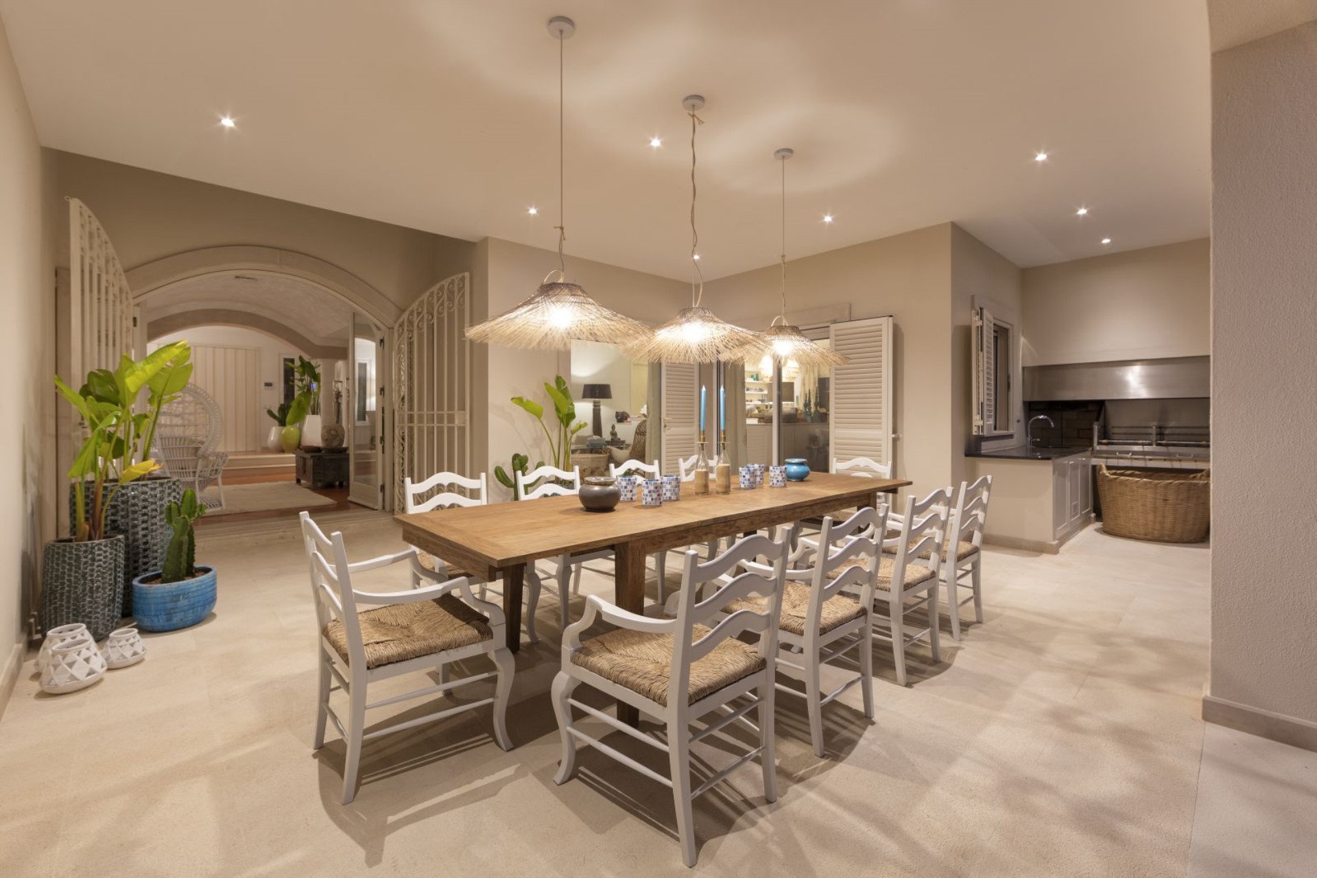 Right in front of the idyllic whitewashed villa guests can find the well-kept swimming pool area, the terrace and a landscaped garden with shady nooks where they can enjoy sociable time over dinner or watching the sunset.