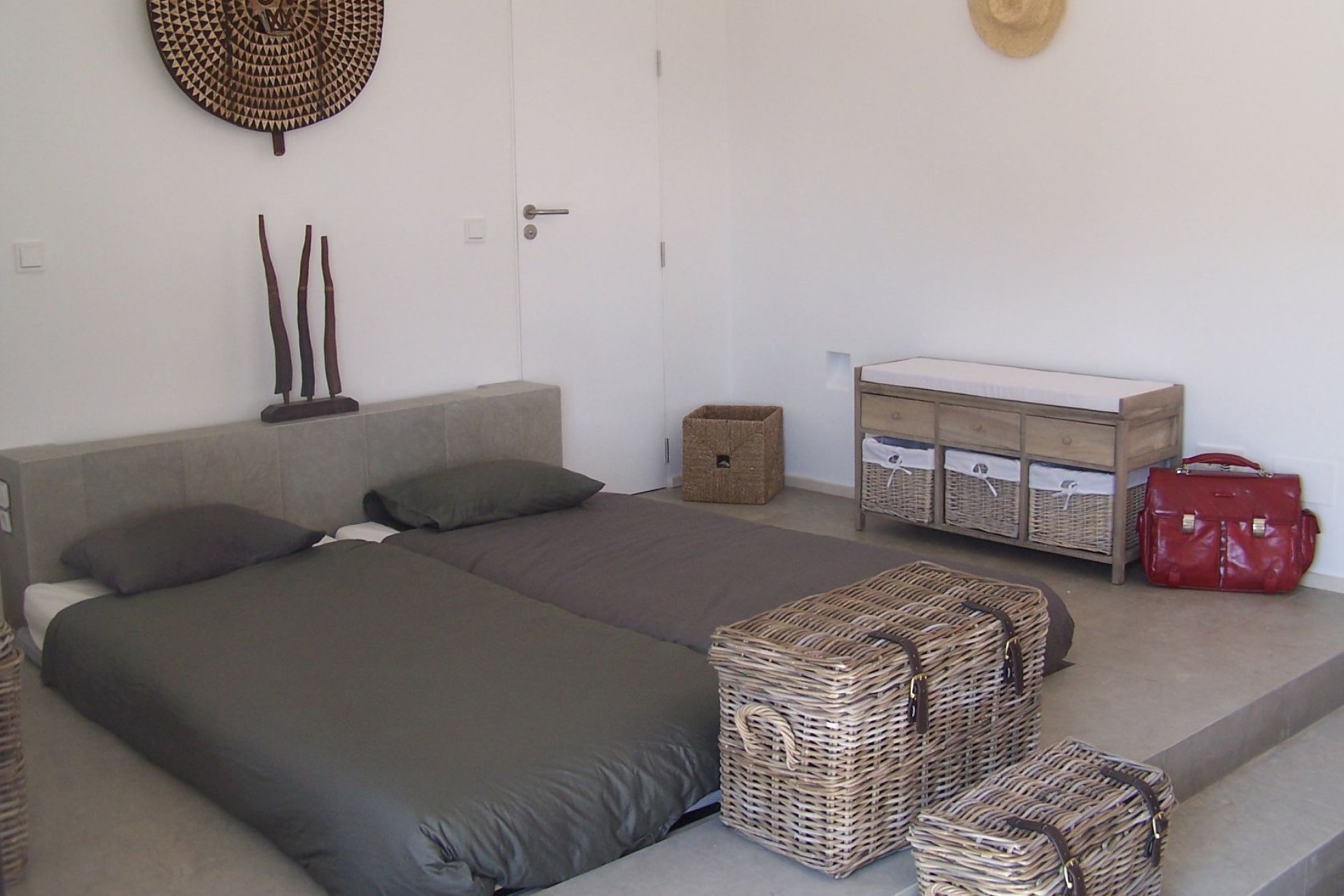 All the bedrooms are generously-sized with large windows that let in the lovely Mediterranean breeze. Each room also sports a private terraceand some have an outdoor shower. All of the rooms are finished to a very modern standard and the choice of colours gives a very welcoming ambiance. There is the possibility to provide smaller single beds for the little ones.
