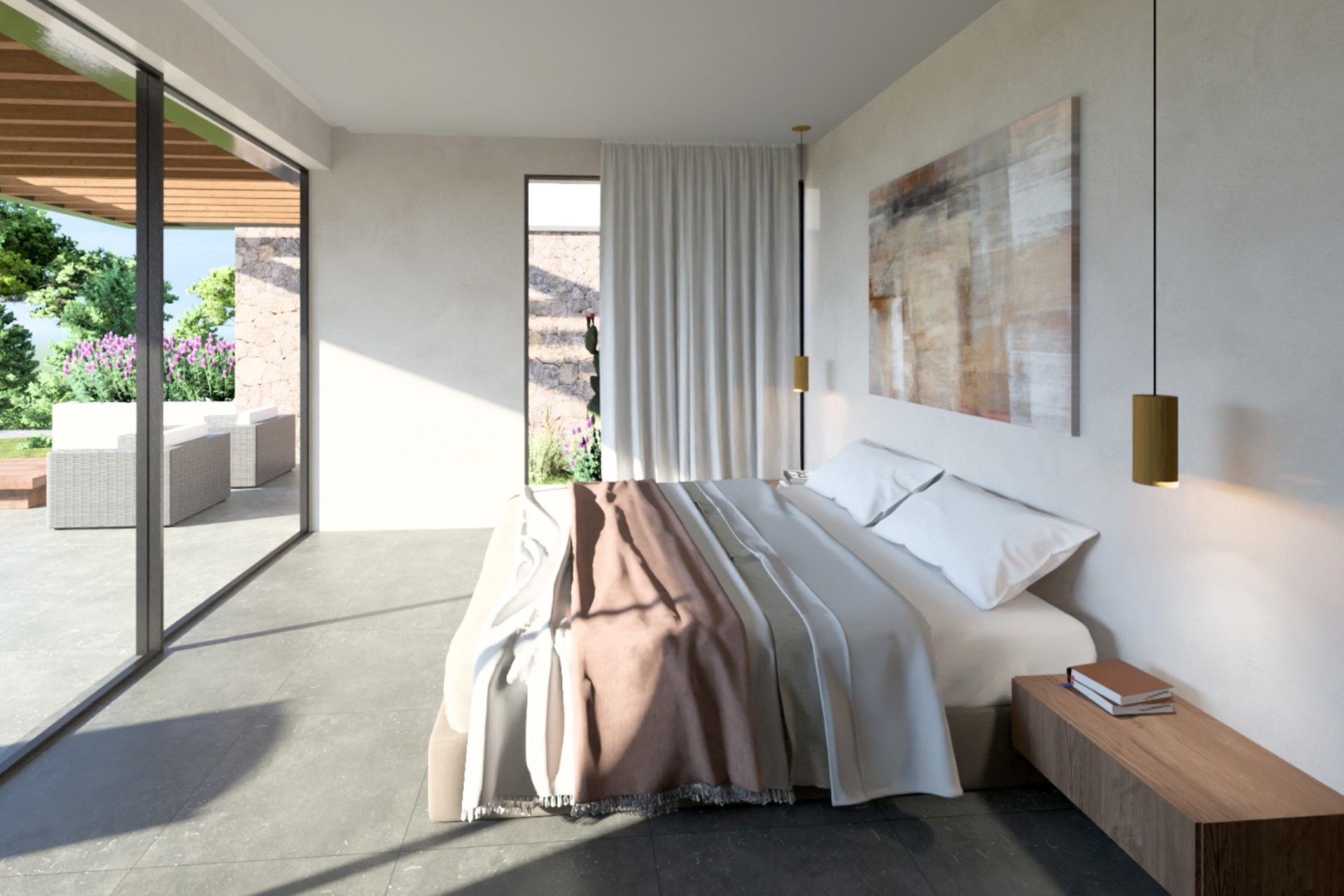 The main villa also features the en-suite master bedroom with a furnished private roof terrace and direct access to the pool. The ground floor is home to two en-suite double bedrooms, plus a double and twin room with a shared bathroom, ideal for families.