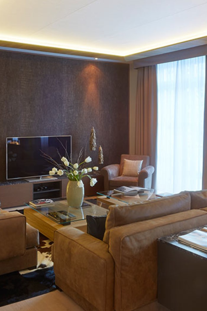 The apartment has a contemporary Alpine style décor, designed by renowned architects with great attention to detail to offer luxury living in Switzerland’s premium ski resort known for world class skiing.