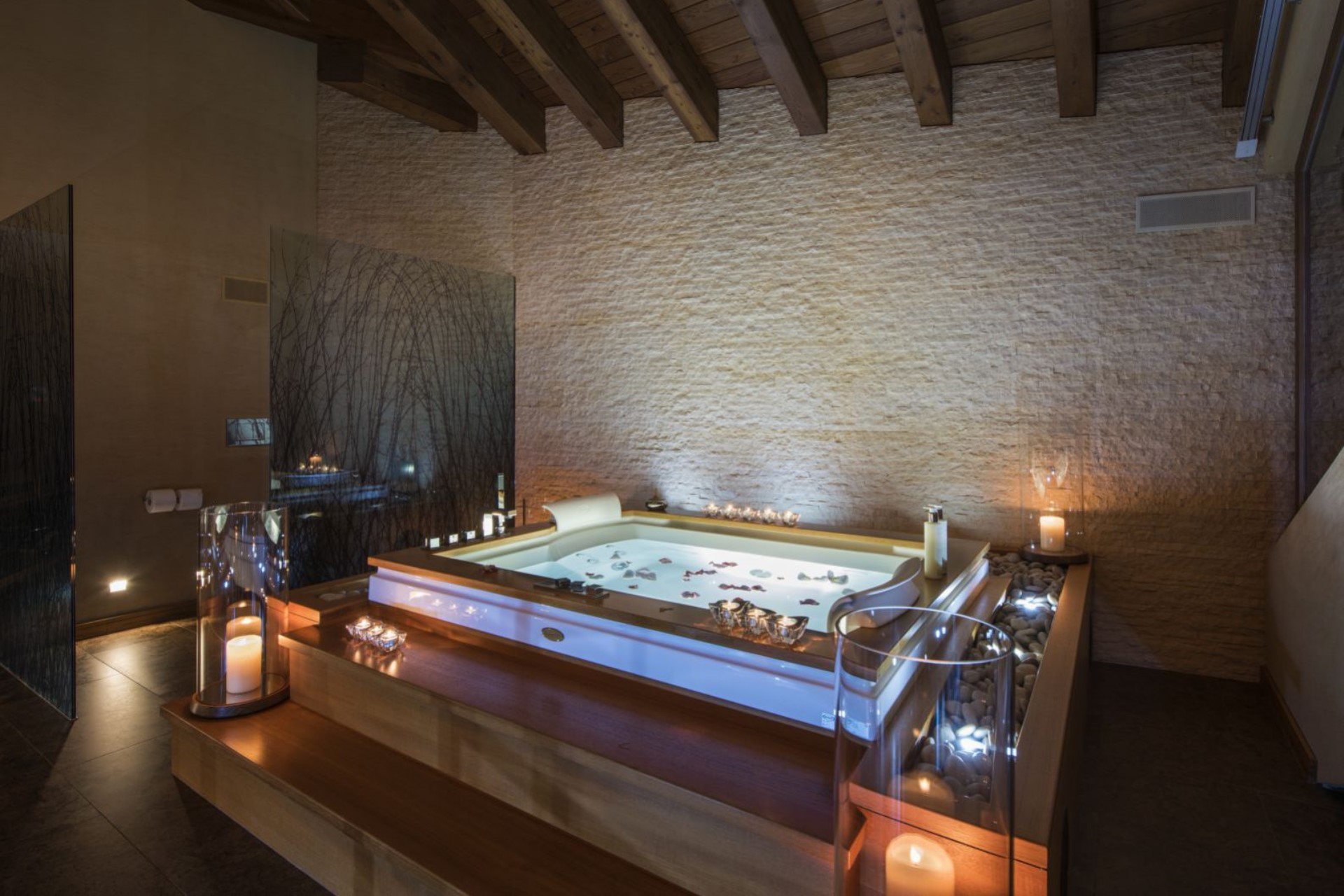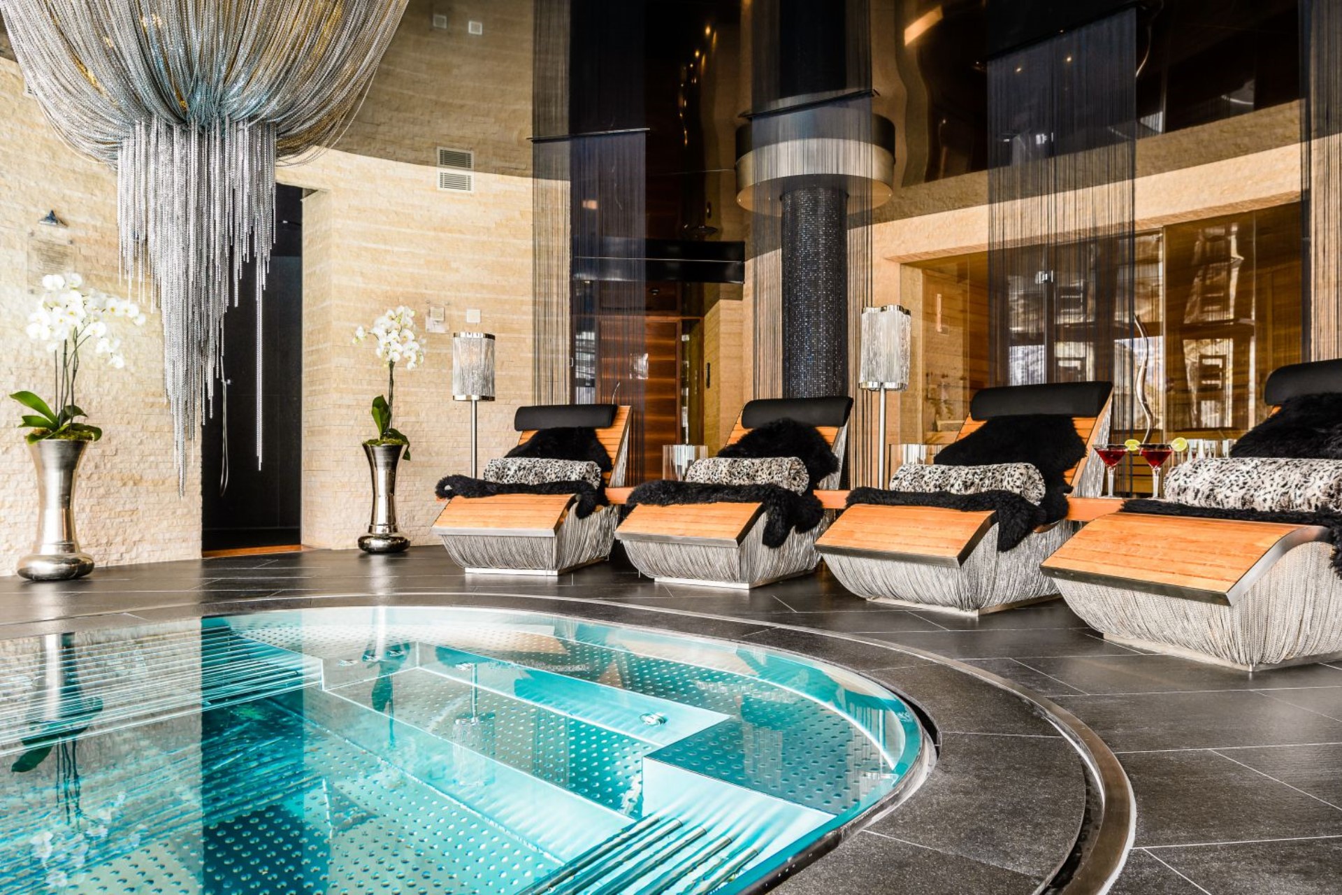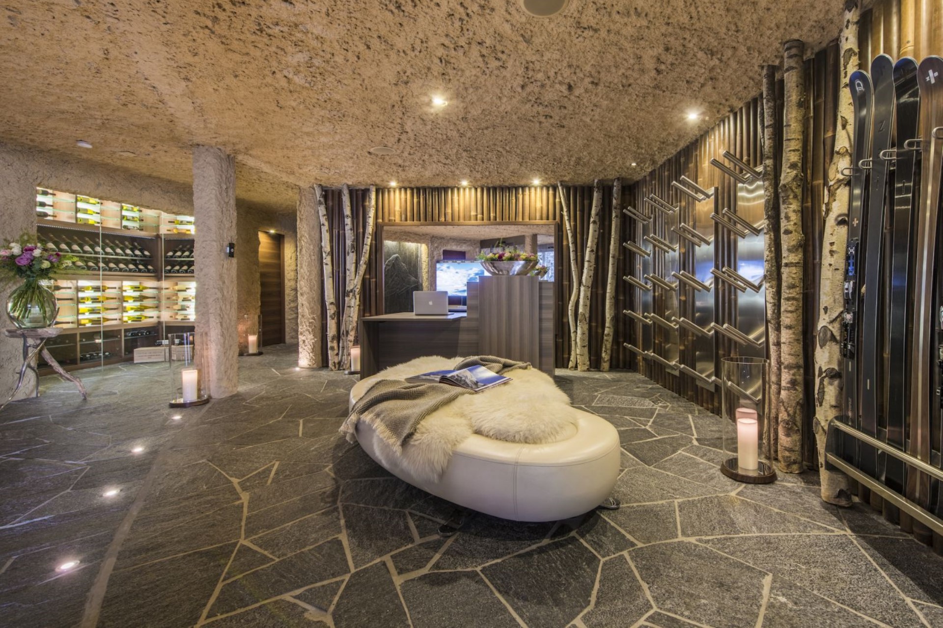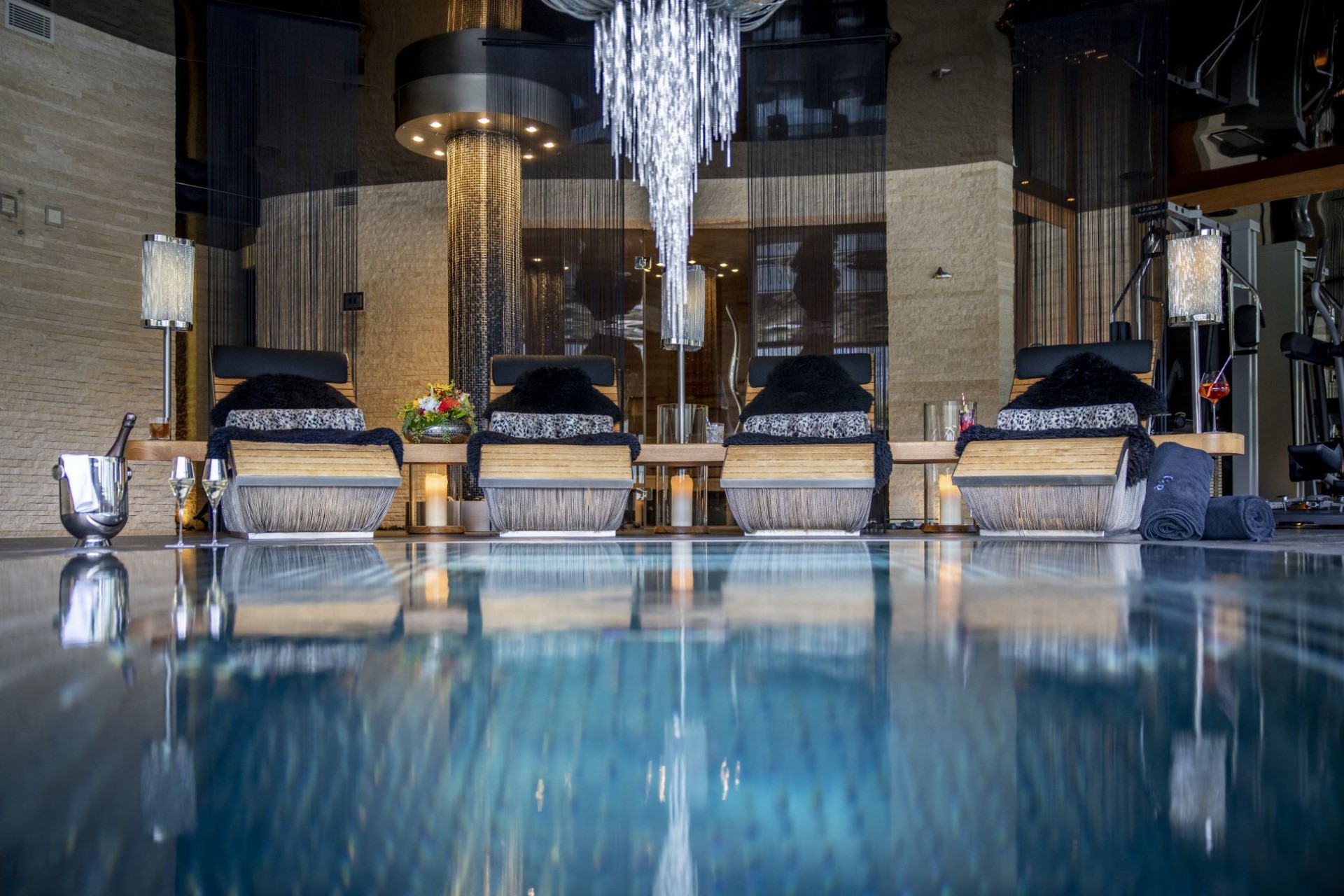 For true relaxation, there is a spacious glass-walled wellness area with an indoor/outdoor Jacuzzi pool, Finnish and Swedish saunas, a bio steam hammam, and massage room where in-house treatments can be arranged. For guests looking to keep up with their off-slope fitness, there is a fully-equipped gym with state-of-the-art equipment.
